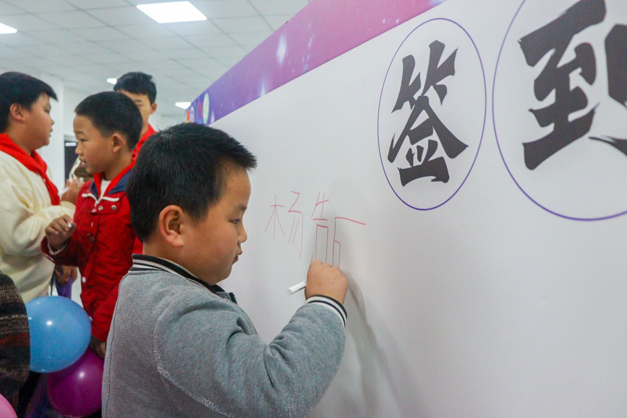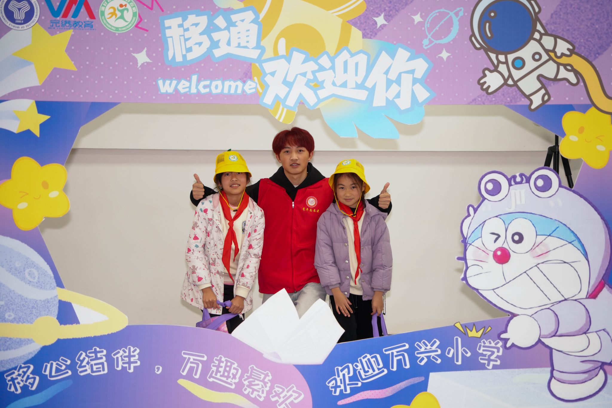 启动仪式结束后,大朋友们、小朋友们手牵手来到报告厅门口进行打卡拍照,他们开心着、搞怪着,无不体现小朋友们天真浪漫的特性。