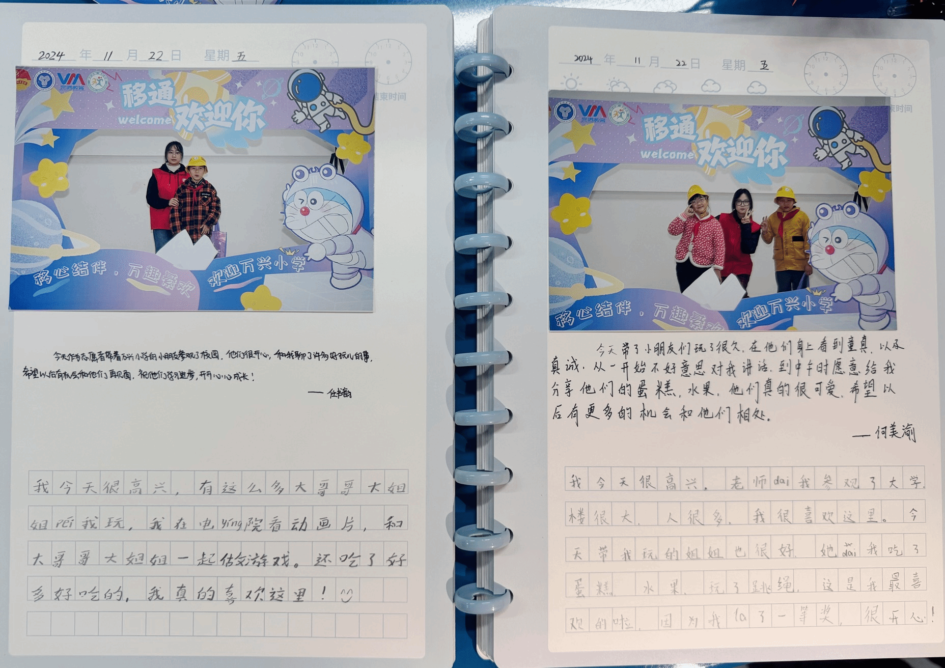活动现场播放了一段视频,温馨回顾了过去一年中移通志愿者与万兴小学生共同经历的点点滴滴。视频中,孩子们的笑脸和志愿者们的无私奉献交织在一起,构成了一幅幅温馨感人的画面。这段视频不仅让在场的每一个人都深受感动,更激发了大家对未来工作的热情和信心。