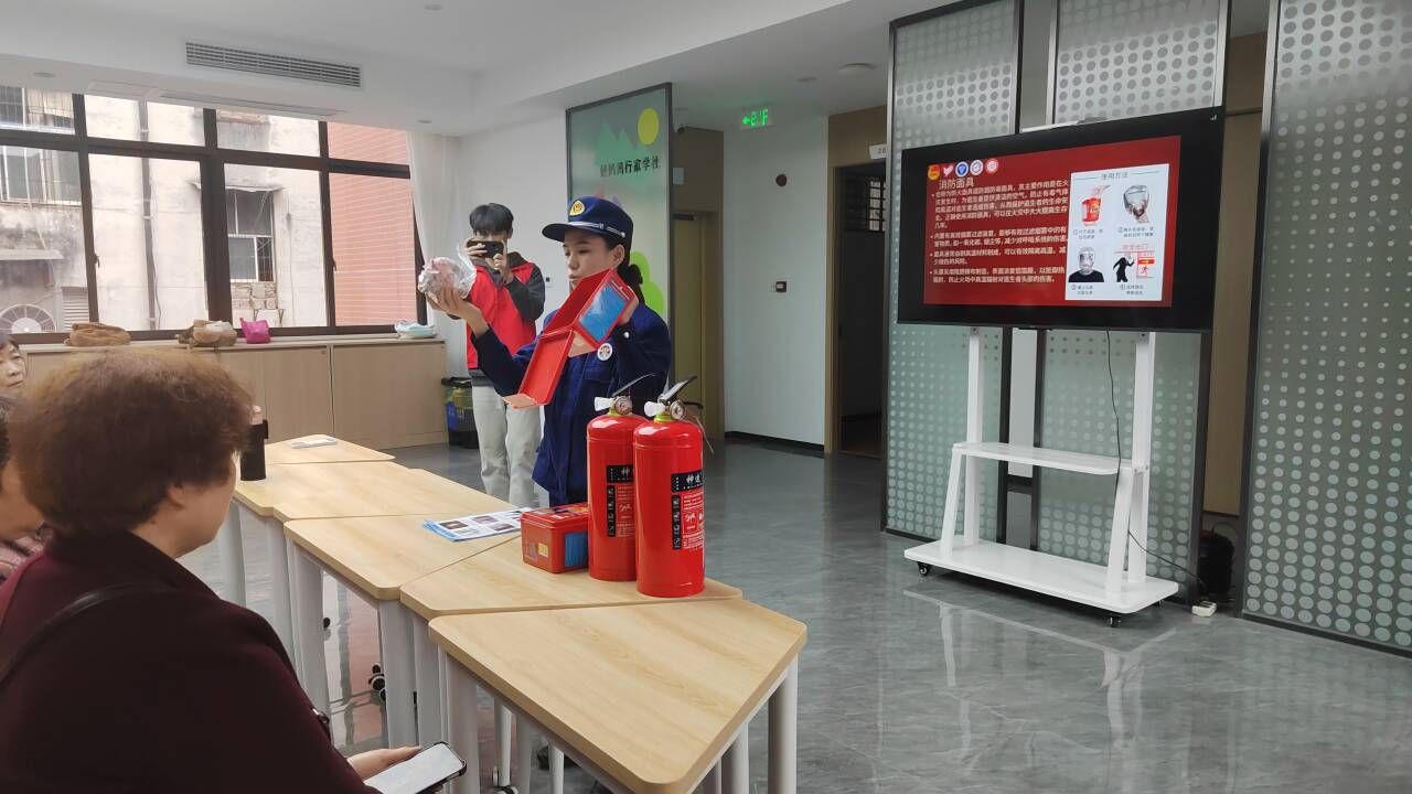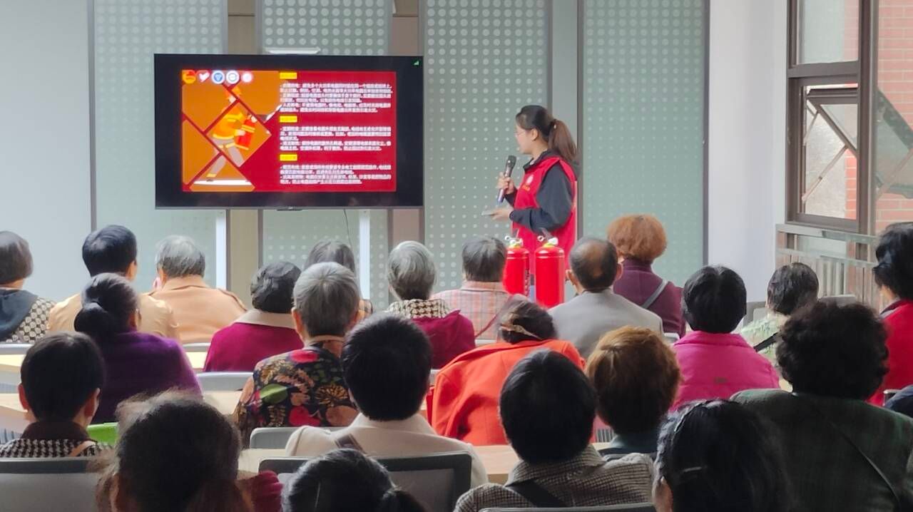 活动伊始,支队队员张怡通过视频播放和图文讲解,向社区老人展示近年来发生的典型火灾案例,分析失火原因,强调预防措施。在日常生活中,会出现在家中的常用电器,比如电器使用不当、易燃物放置不合理等方面的危险,耐心仔细地向老年人讲解。