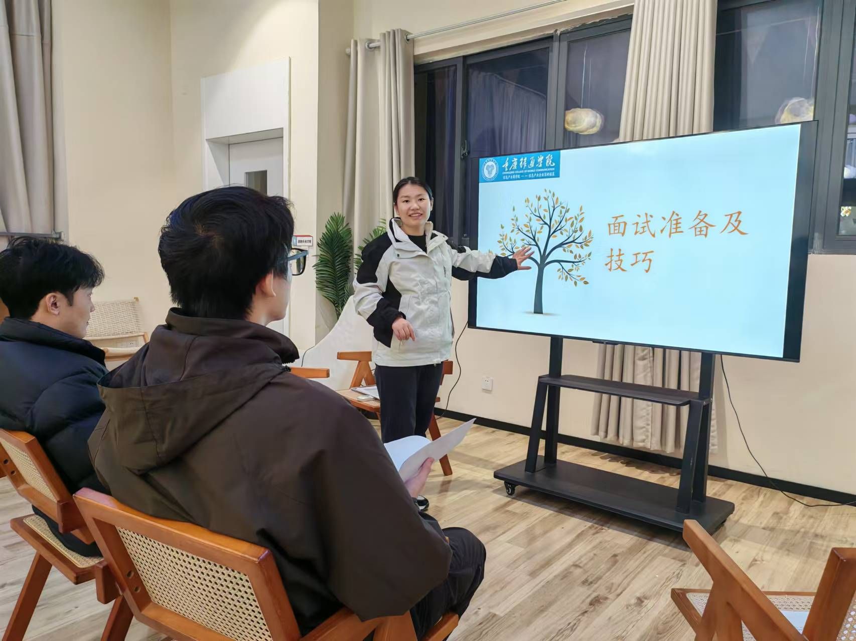讲座开始,张老师强调了面试准备的重要性。她表示在同学们工作首先要积极探索各种岗位招聘信息,通过公众号、官网等渠道,全面了解招聘需求;同时,结合实际岗位,详细解读不同岗位的要求,明确求职方向。