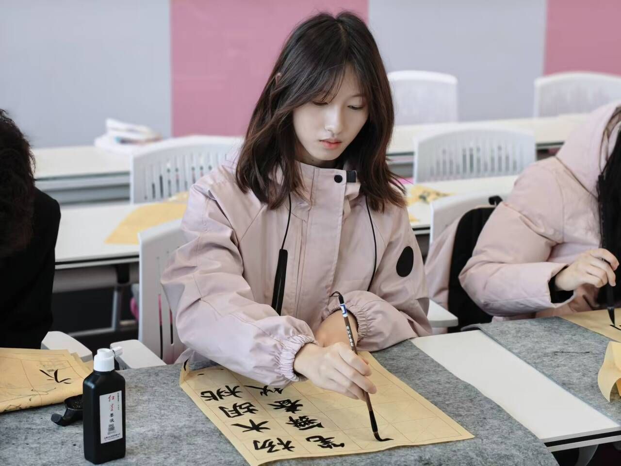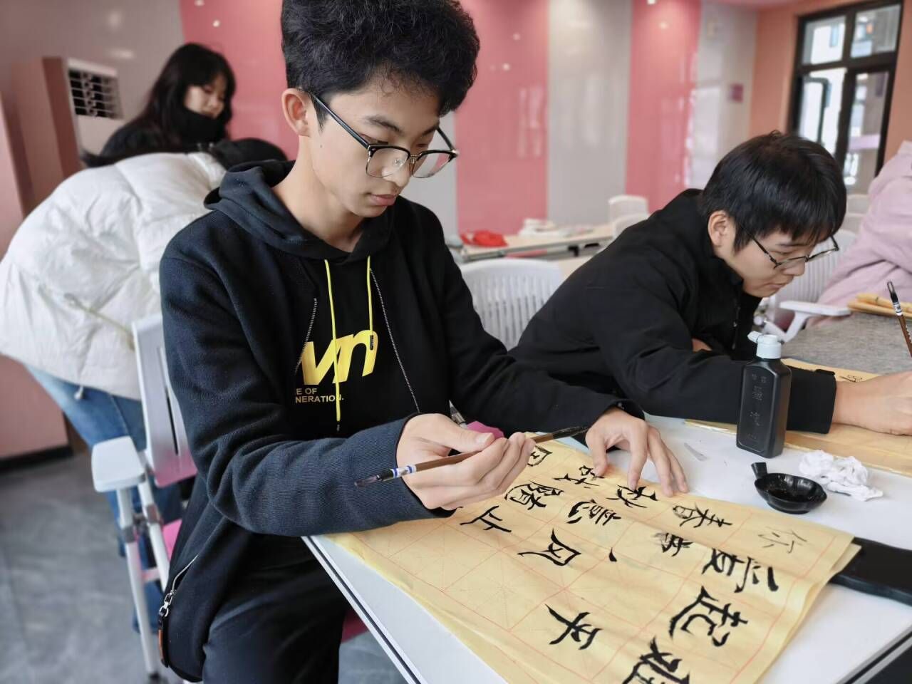 笔墨纸砚,样样齐全;八仙过海,各显神通。同学们挥毫泼墨,积极参与其中。他们或站或坐,全神贯注地书写着每一个字,充分展现自己的书法功底。笔锋在纸上跳跃,墨迹逐渐干涸,一幅幅精美的书法作品在他们手中诞生。这些作品以“雪”为主题,或描绘雪景的宁静与纯洁,或抒发对雪的情感与感悟,字里行间都透露着对传统文化的热爱与敬仰。
