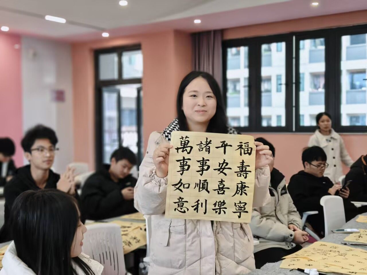 活动接近尾声,优秀作品被逐一收集。同学们举起自己创作的书法作品与志愿者们合影留念,最后,活动在一片欢声笑语中结束。此次活动不仅是对24节气传统文化习俗的深入挖掘与传承,更是计算机学院学子奉献爱心、践行社会责任的体现。相信同学们创作出的精彩书法作品,能够让传统文化在新时代焕发出新的光彩,同时为社区老人送去最诚挚的问候。