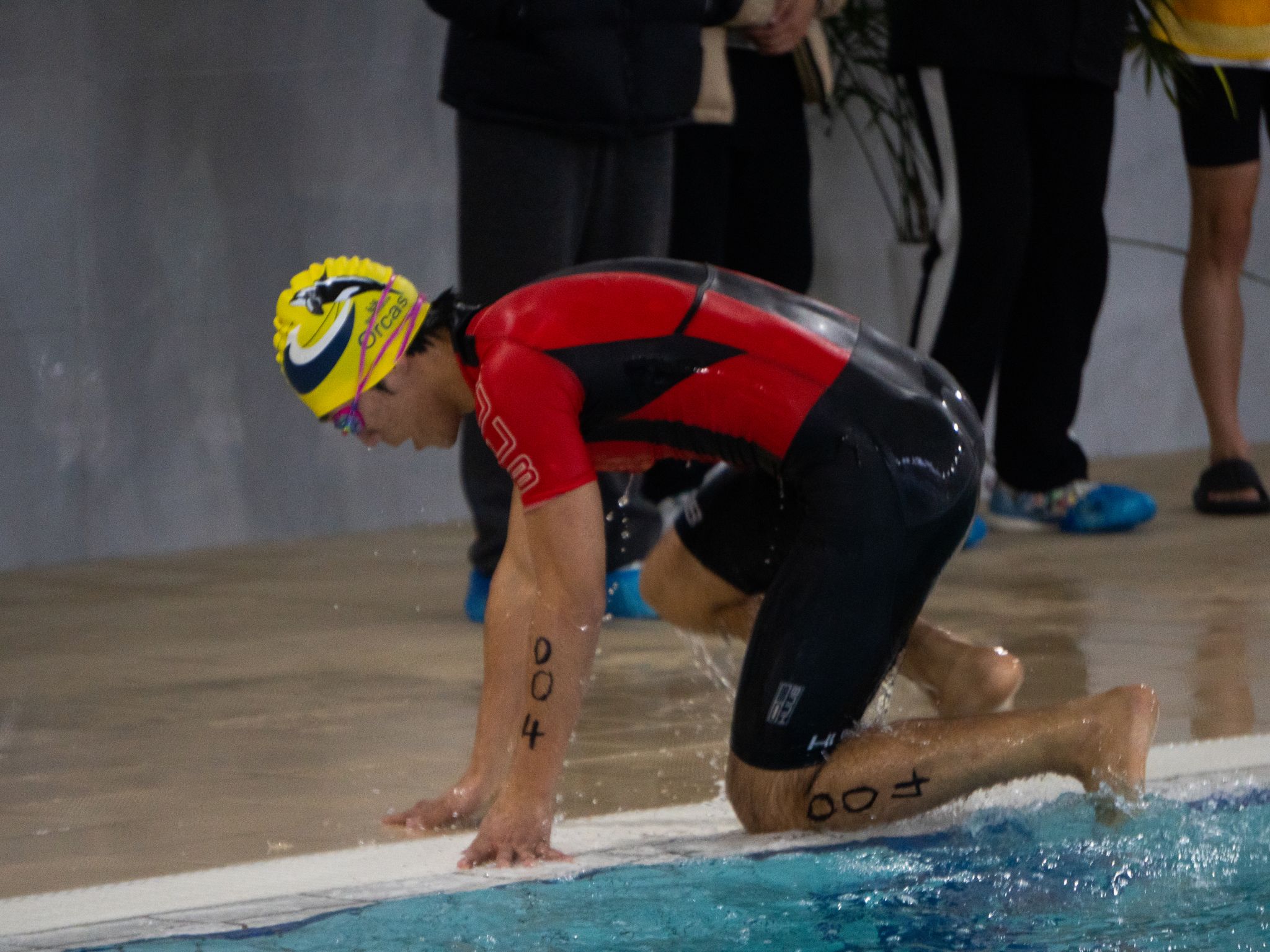 随着裁判一声令下,铁人三项比赛正式拉开帷幕。计算机参赛选手们首先跃入游泳池中,开始游泳赛段的比拼。他们劈波斩浪,每一次划臂都充满力量。紧接着是自行车赛段,为了节省时间,他们套上了一件衣服就马不停蹄地往骑行换项区奔跑,虽然身体是冰冷的,但是他们的激情不减。他们快速调整自己的状态,跨上赛车,在操场上沿着跑道疾驰,风驰电掣的身影成为一道亮丽的风景线。最后的跑步赛段,计算机参赛选手们沿着赛道奋力冲刺,汗水与坚持交织成最美的画面。