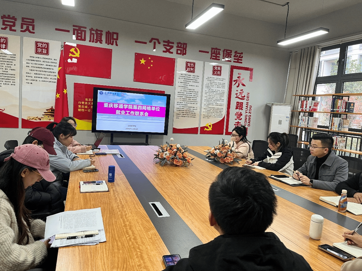 为深入学习贯彻习近平新时代中国特色社会主义思想和党的二十届三中全会精神,全面落实党中央、国务院对高校毕业生就业创业工作的决策部署,根据《重庆移通学院2024-2025学年就业创业工作实施意见》,进一步完善精准帮扶机制,精准落实帮扶政策,同时加强网格单位各部门与学院辅导员、教师之间的沟通与合作,全力促进 2025 届毕业生高质量充分就业。计算机学院牵头于12月3日15:00在横山书院党团会议室成功开展重庆移通学院綦江校区第四网格单位就业工作联系会。
