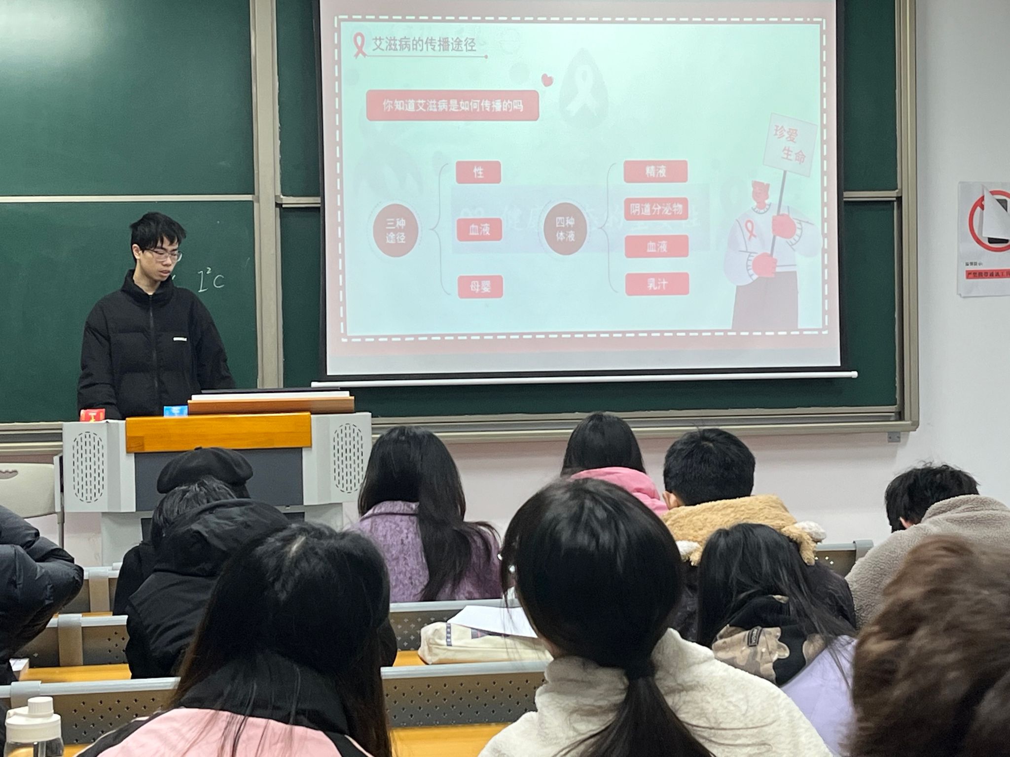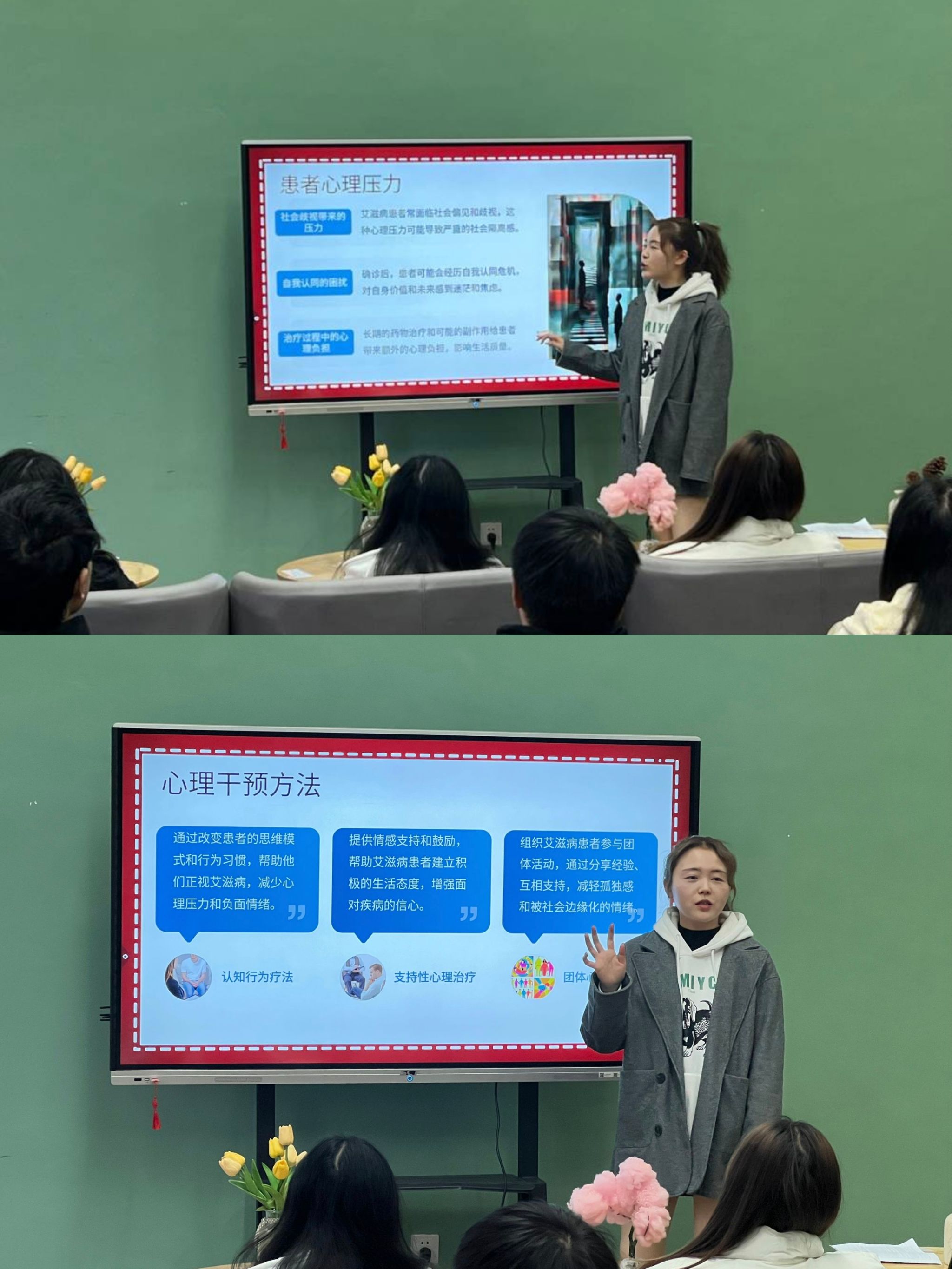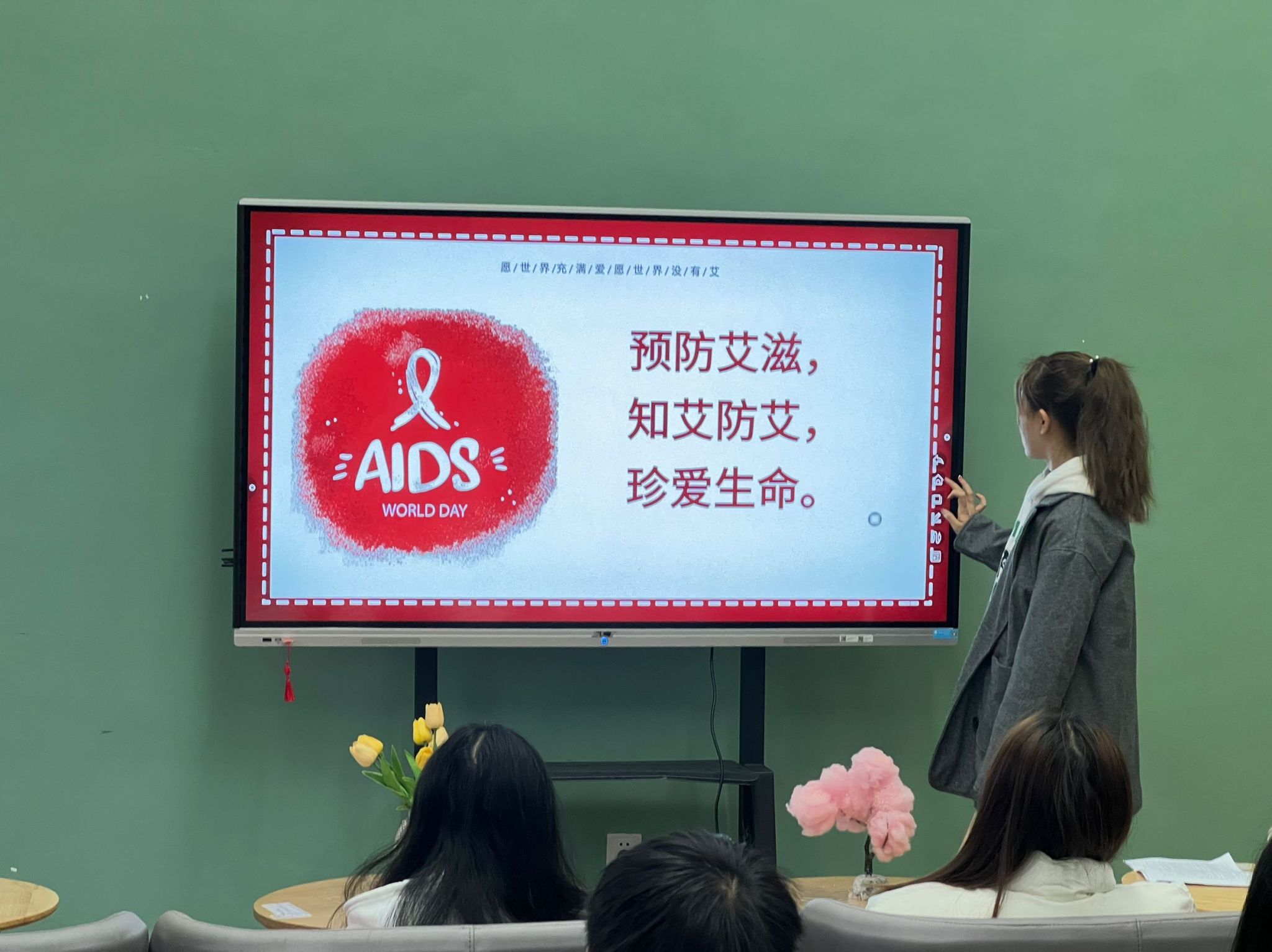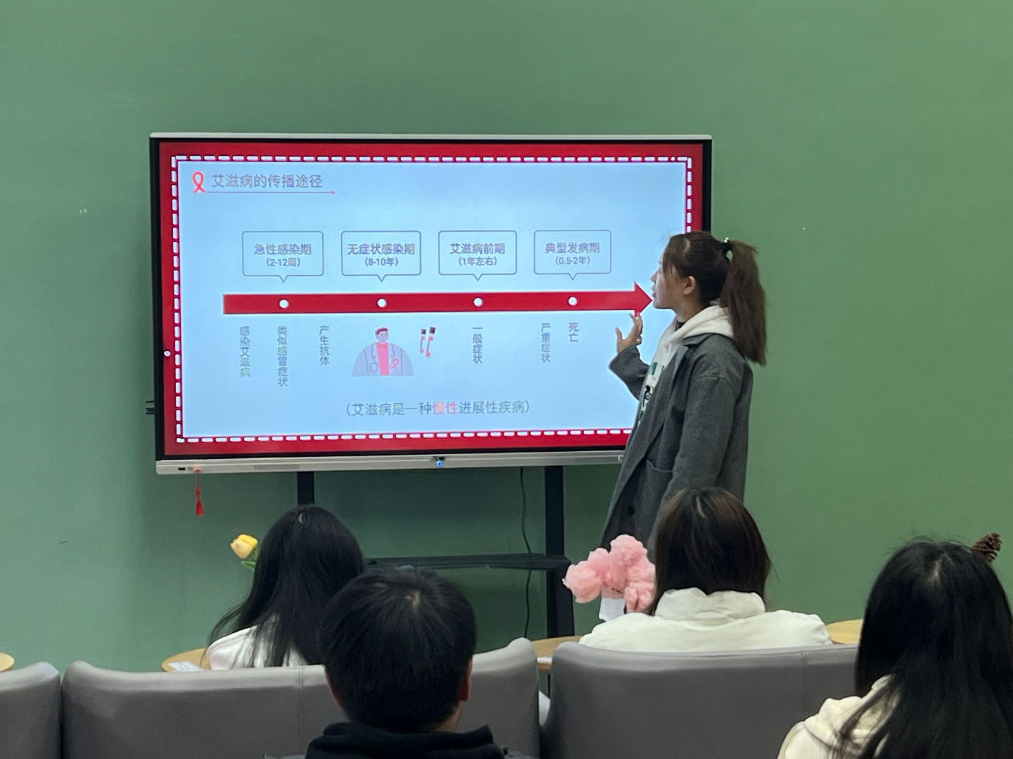 活动伊始,丁滢老师以“2024年是第几个世界艾滋病日”为题拉开了序幕。她提到:“在这个多元而复杂的社会中,艾滋病如同一片挥之不去的阴影,给无数人的心灵蒙上了厚重的尘埃。但正如黑暗中的一缕光,我们的心灵之光能够照亮前行的道路,驱散恐惧与歧视。”此次活动分别从“艾滋病的定义”、“艾滋病的传播途径”、“健康心态的重要性”以及“艾滋病的预防和治疗等四个方面进行开展”。