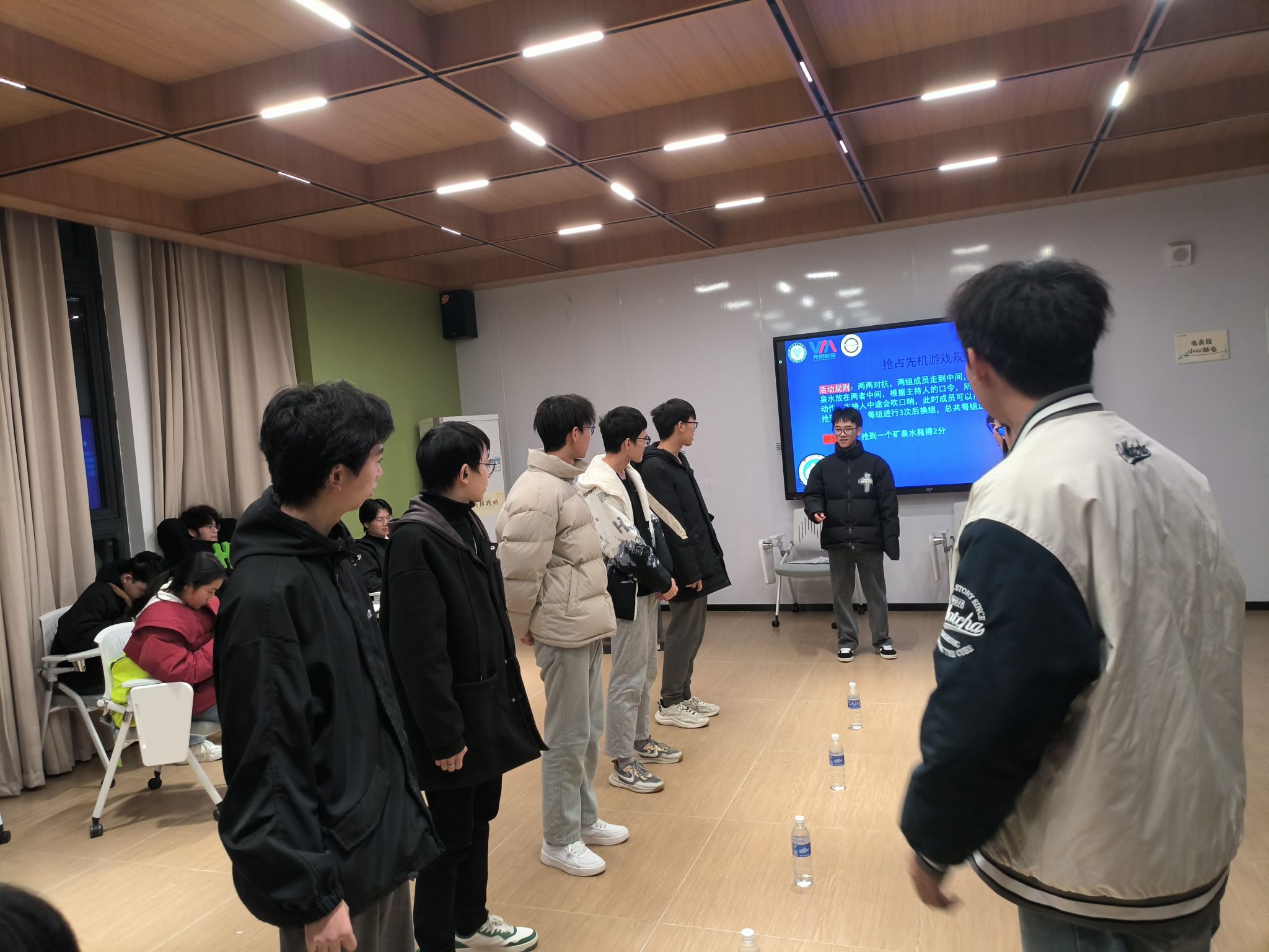 活动的高潮出现在第三个环节“抢占先机”。这是一个考验反应速度和团队配合的互动游戏。主持人通过变换口令考验同学们的临场应变能力,而矿泉水的争夺则让紧张感不断升级。在每一次的哨声响起时,各组成员以迅雷不及掩耳之势扑向目标,争夺激烈程度令人惊叹。
