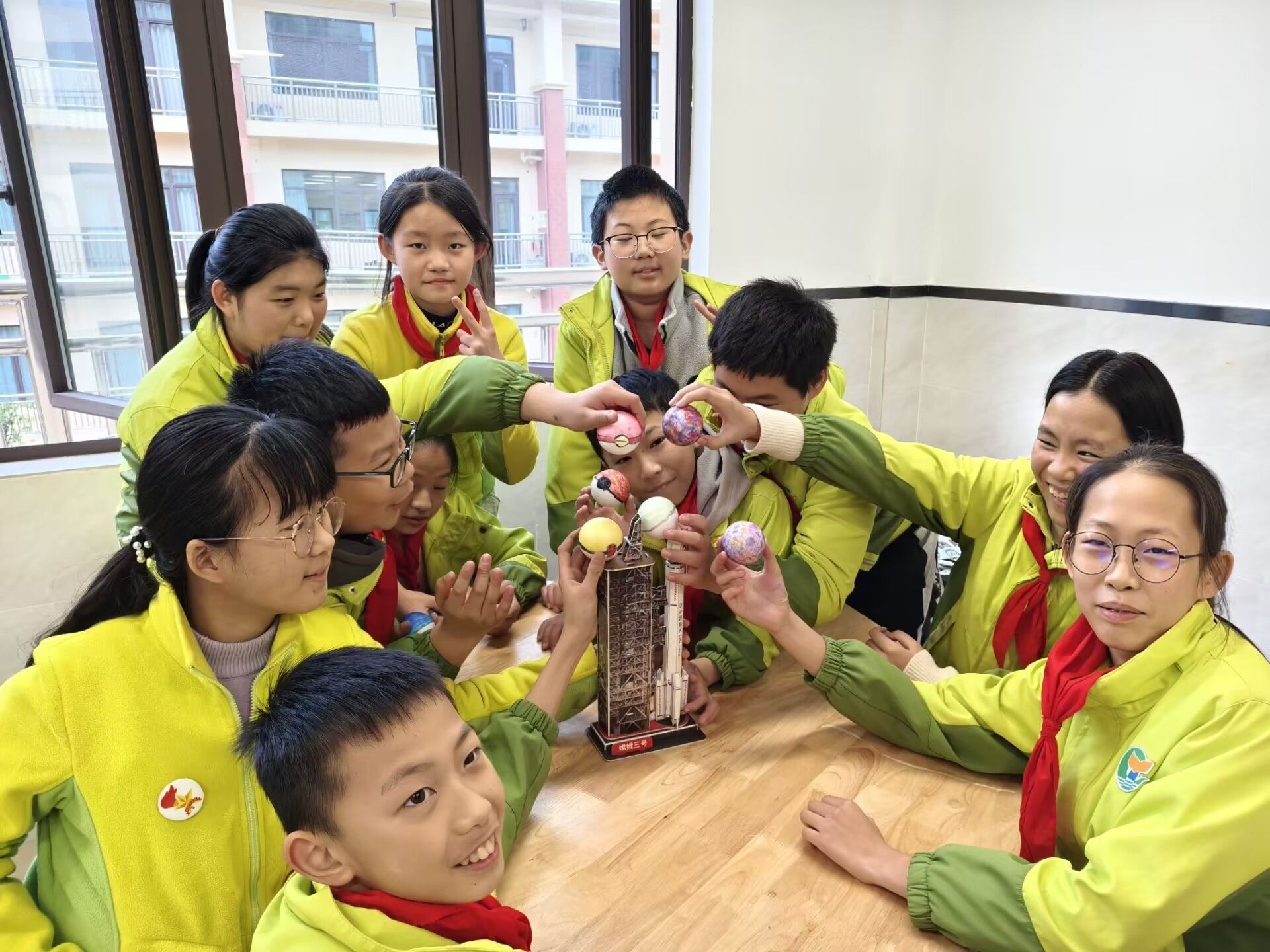 活动高潮部分,志愿者为每一小组提供航天器模型材料。在志愿者的悉心指导下,小朋友们开始一同合作搭建航天器模型。尽管这是他们首次尝试,但展现出了非凡的热情与创造力。搭建完航天器的小组将一人获得一个泡沫球,发挥自己的无限创意,拿起画笔描绘出他们心中的星球景象。经过一番努力,一个个栩栩如生、充满想象力的航天器模型和星球画作应运而生,仿佛即将启航,驶向无垠的宇宙。
