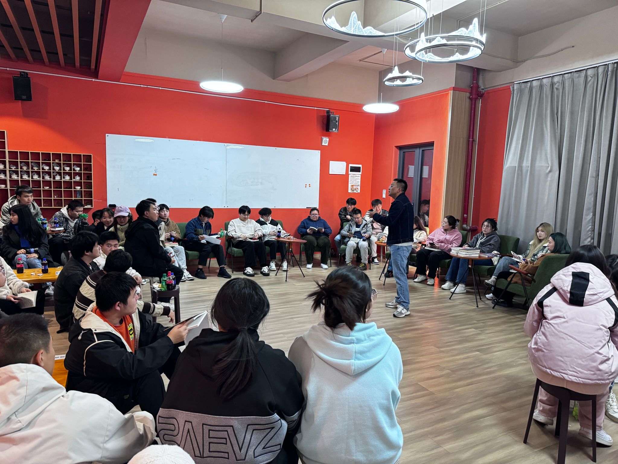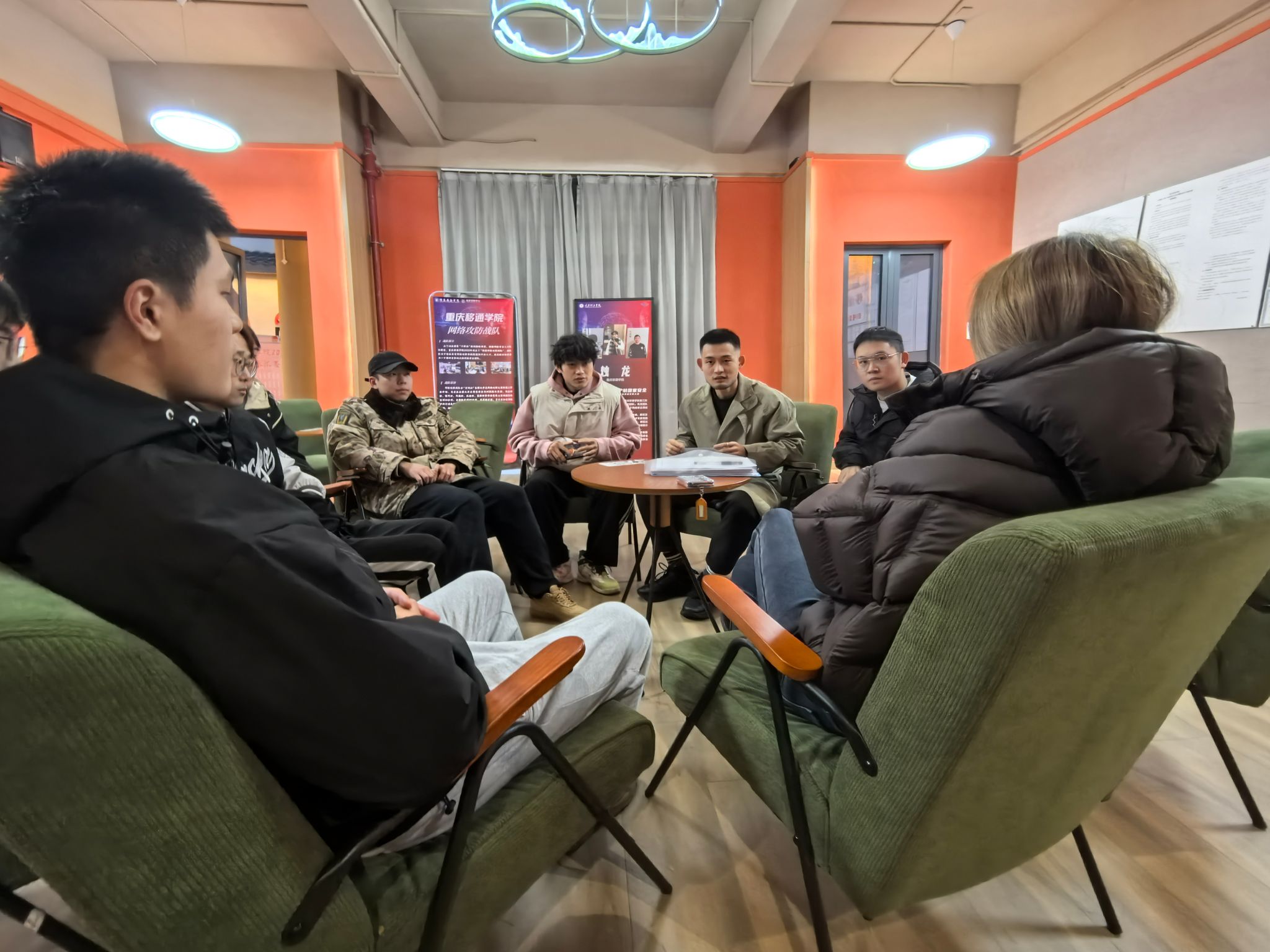2024年12月16日晚,古剑书院白虹半间闲室灯火通明,气氛热烈非凡,胡垚、李婷婷老师与来自计算机科学与技术专升本专业1、2、4、5班的同学们在此举行了一场别开生面的异科见面会。此次见面会如同一场知识与心灵的盛宴,为师生们搭建起了一座交流互动的桥梁,开启了携手共进的新篇章。
