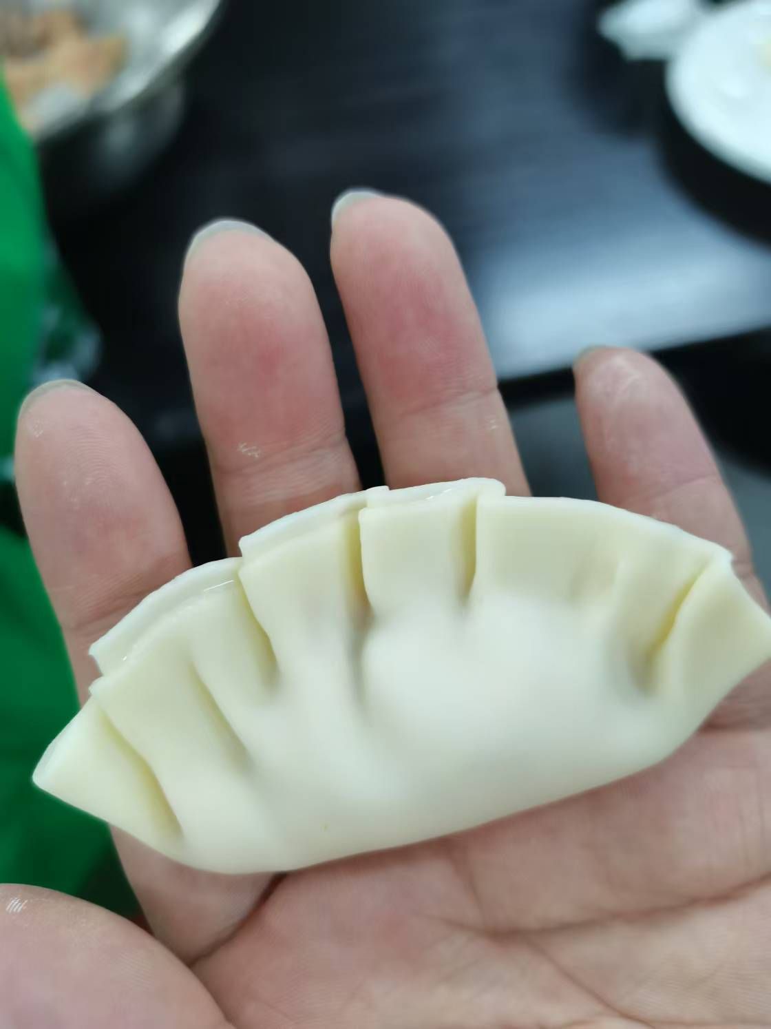 活动现场热闹非凡,欢声笑语此起彼伏。韭菜鸡蛋馅、玉米馅、白菜猪肉馅、饺子皮等食材整齐地摆放在桌上,一到场,同学们便迫不及待地卷起袖子,洗净双手,开始动手包饺子。有的同学手法娴熟,包出的饺子个个皮薄馅大、形状规整;有的同学虽然是第一次尝试,包出的饺子形状各异,却充满了创意与乐趣。