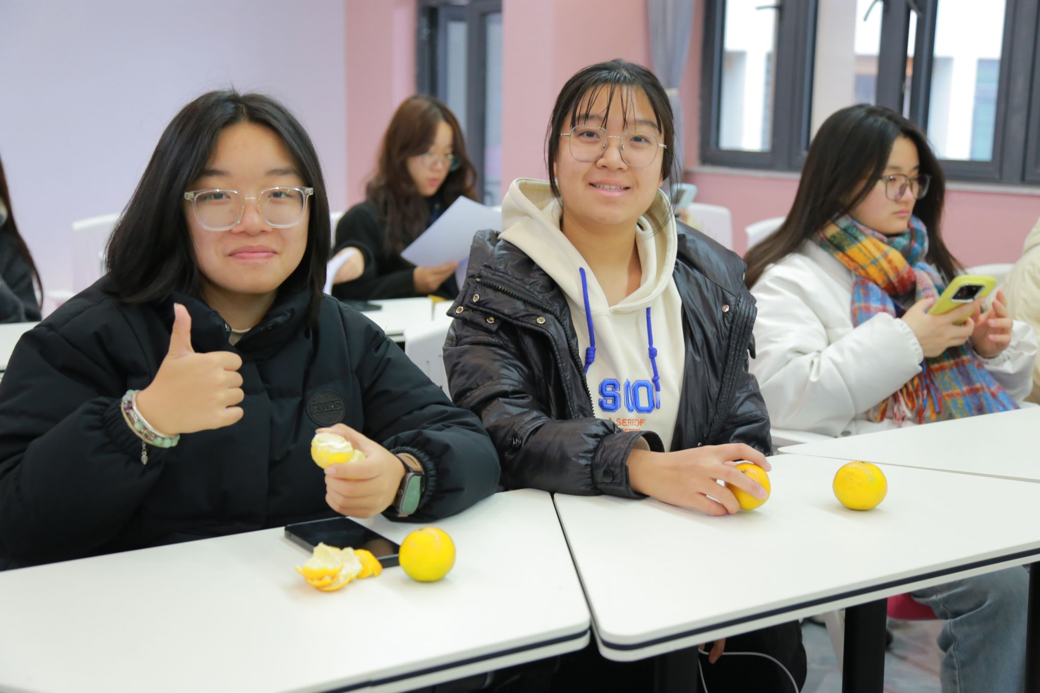 活动开场前,彭兰萱贴心地为每位同学准备了橙子,寓意着诚心、诚意,为班会营造出温馨而活泼的氛围。