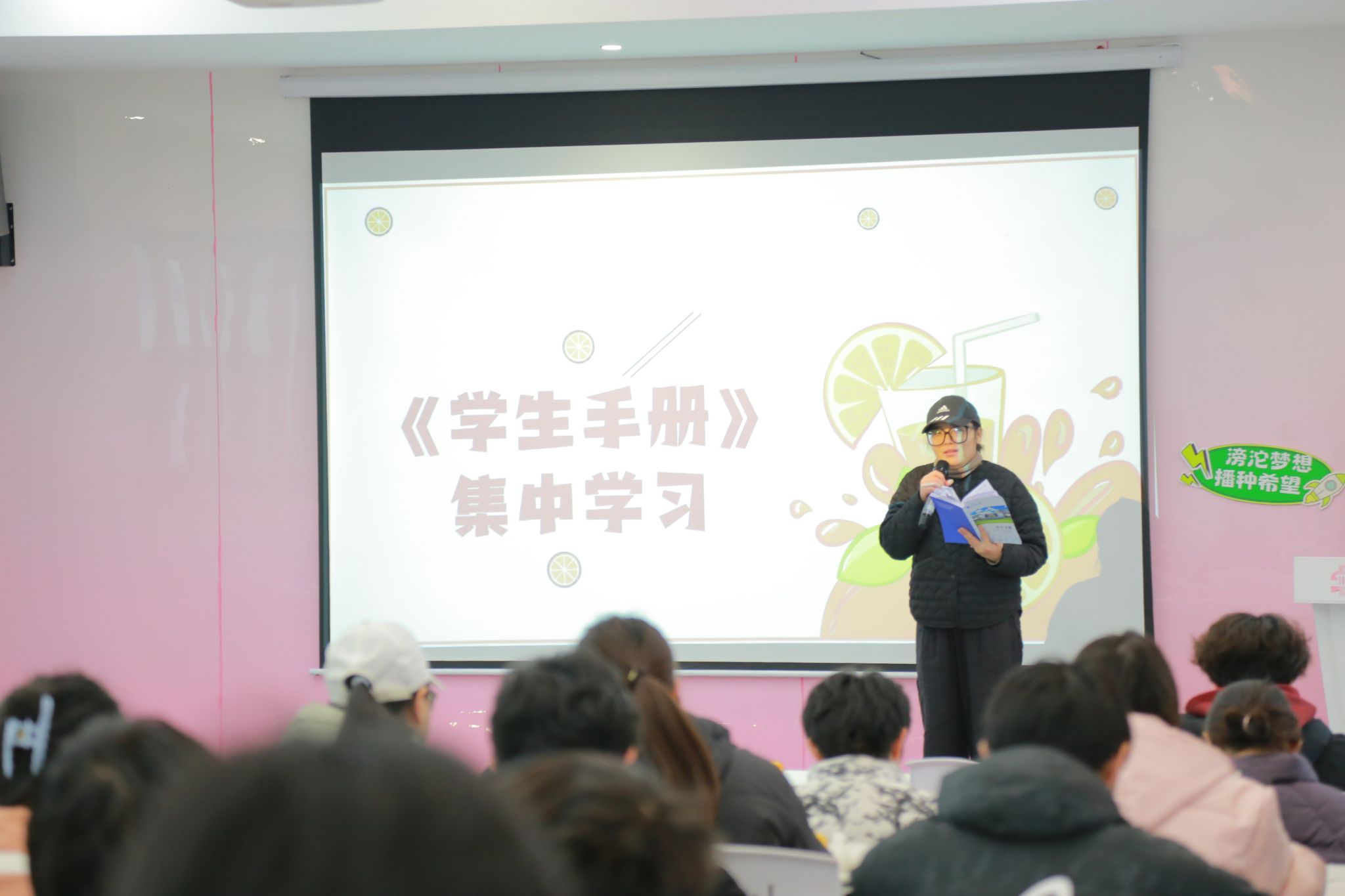 随着期末考试的临近,为了更有效地指导学生加强考试纪律和安全教育,彭兰萱所带领的2024 级计算机科学与技术 16 - 17 班的异科班同学们于12月20日在丁山书院・天蝎座功能室,成功举办以“品橙悟诚,立德修身”为主题的学风考风及节假日安全提醒异科导师活动。本次活动旨在为同学们的学业进步、品德修养以及假期生活提供保障。异科导师彭兰萱担任了本次班会的主持人,该班全体学生参与。