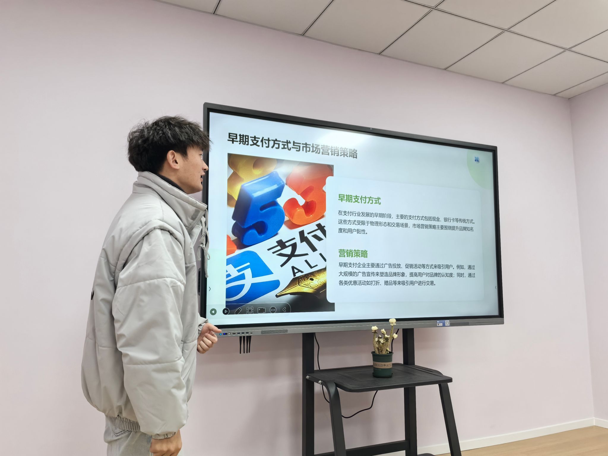 读书,是一场心灵的冒险。在书的世界里,我们可以邂逅不同的人生,领略别样的风景。沉浸在文字中,我们仿佛拥有了翅膀,能飞往任何想去的地方。读书让我们变得更加睿智,更加从容。它是我们成长道路上最好的伙伴,陪伴我们度过每一个美好的时光。拿起一本书,开启一段奇妙之旅。在阅读中,我们发现自己,也发现世界。让我们一起享受读书的乐趣,让书香弥漫在生活的每一个角落。活动开始在融洽的氛围中王亚博同学开始了对《支付战争》一书的分享。“相信各位同学对这个近些年的世界传奇商科人物并不陌生,本书以从内容上高度总结了在几个特色时期决策,如加密支付软件、在线支付业务等。例如马云毫无疑问是成功的,他的支付宝遍布中国各地被誉为中国现代化四大发明之一”