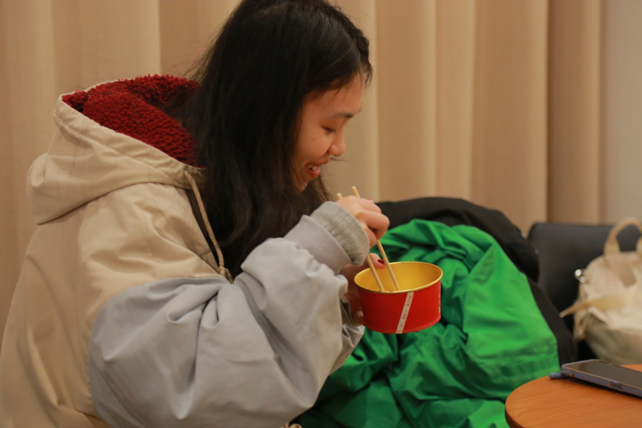 不久,汤圆煮好了,同学们迫不及待地品尝着自己亲手制作的成果。软糯香甜的汤圆入口,那满满的幸福感在舌尖上蔓延,也暖在了每个人的心里。大家围在一起,分享美食,欣赏刚写好的对联,共同感受新年的喜悦和团聚的温馨。