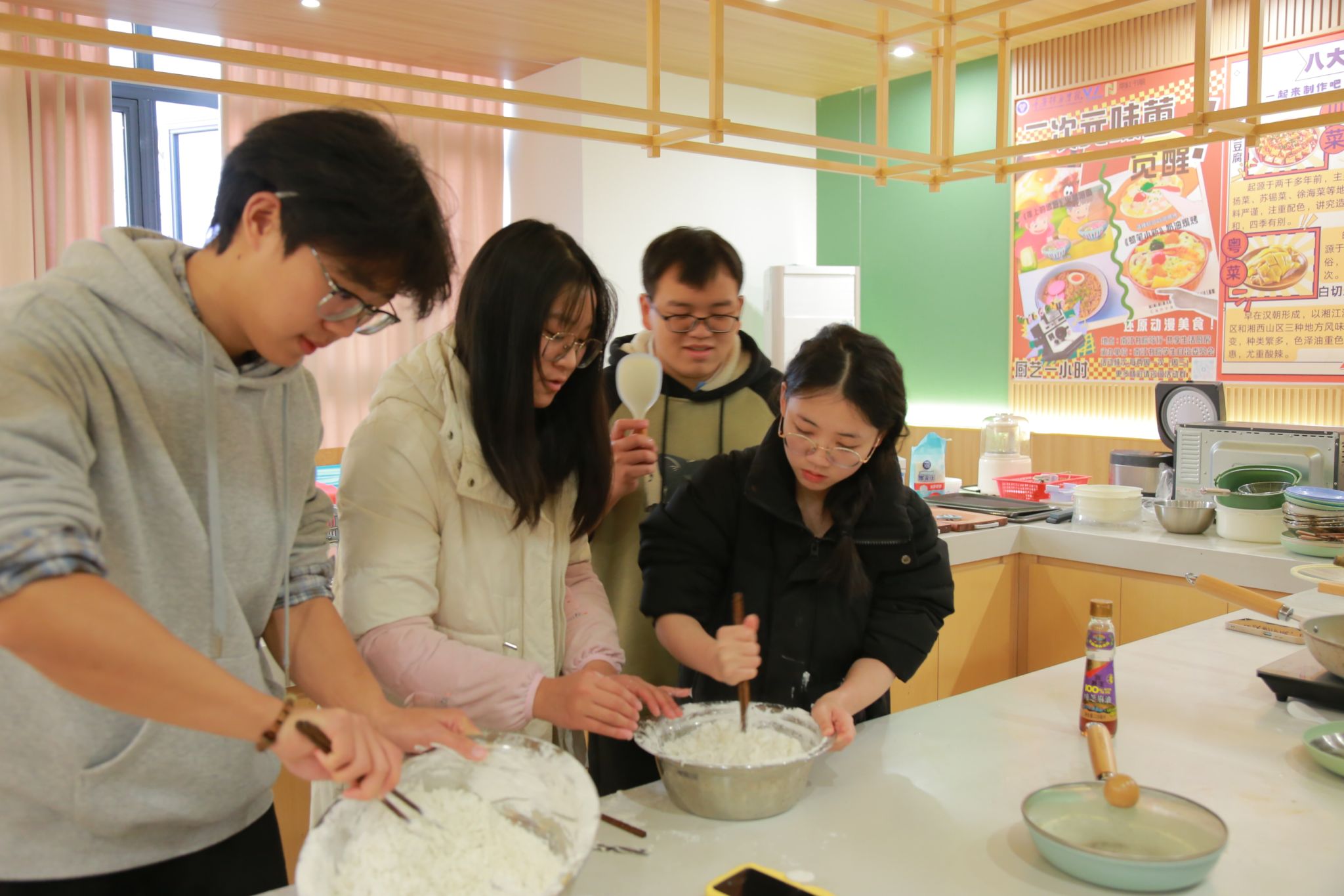 活动现场热闹非凡,同学们分工合作,热情洋溢地投入到各项准备工作中。在揉面环节,大家挽起袖子,将洁白的糯米粉与适量的水巧妙融合,一双双巧手不停地揉搓按压,不一会儿,原本松散的面粉就变成了一个个光滑柔软的面团,仿佛赋予了它们新年的生机与活力。