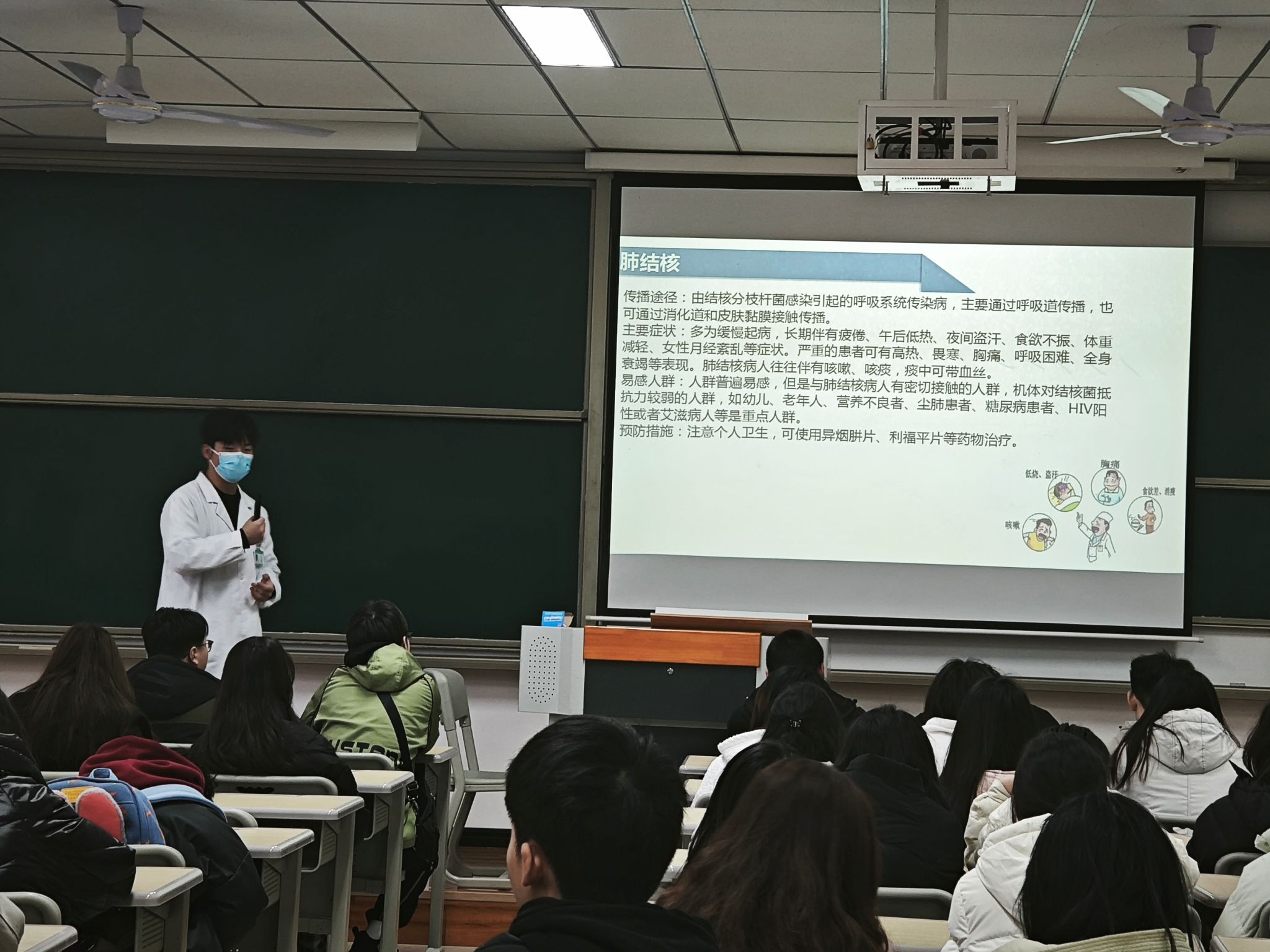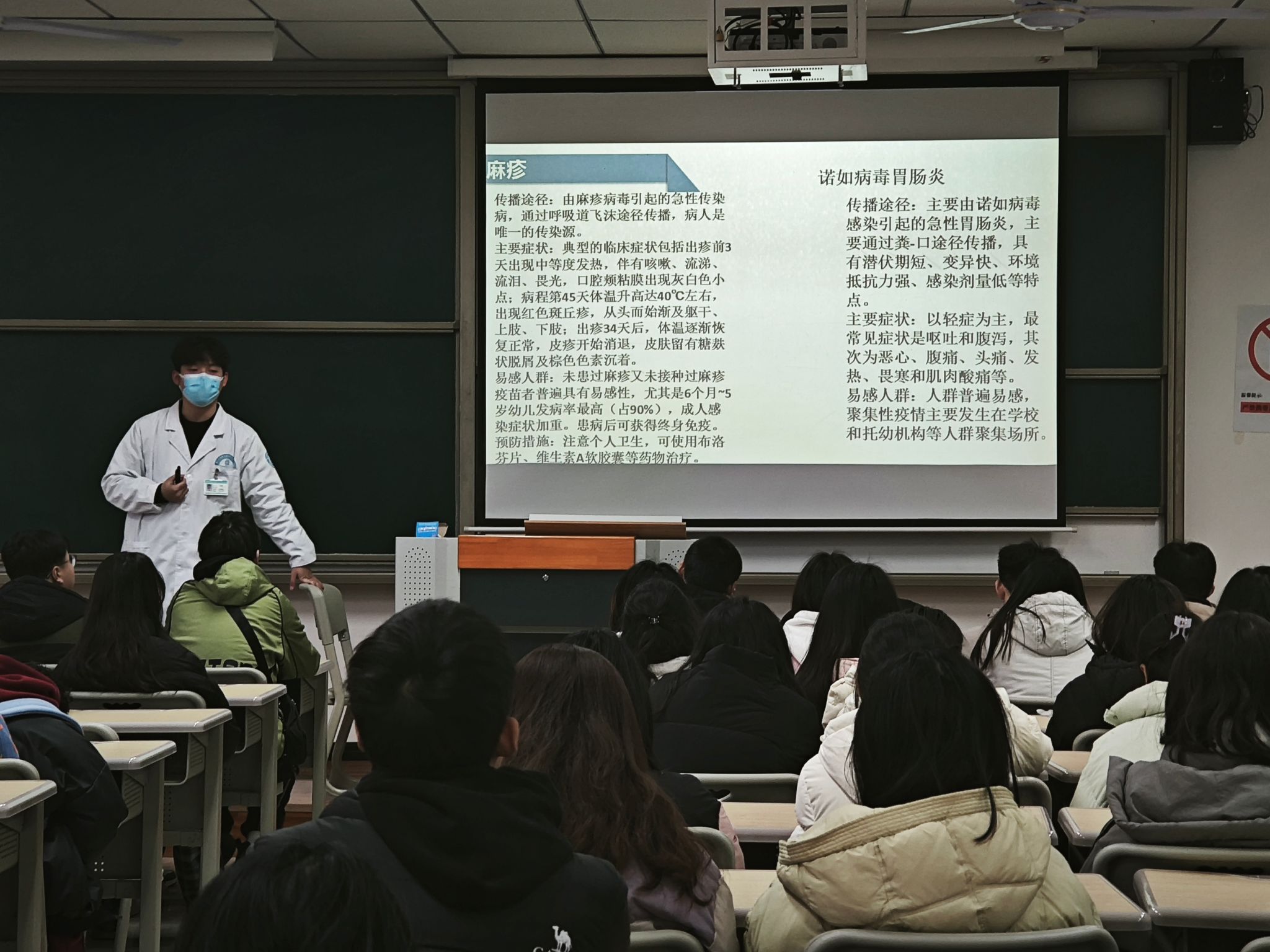 健康宣传,提升防病意识:通过讲座等形式,向同学普及艾梅乙结核及其他春季传染病的防治知识,帮助大家了解传播途径、预防措施和科学应对方法,增强自我防护意识。医务室医生鼓励大家主动参与检测,做到早发现、早干预、早治疗。同时,针对春季高发的流感、水痘、腮腺炎等传染病,也提供了相关咨询和预防指导。