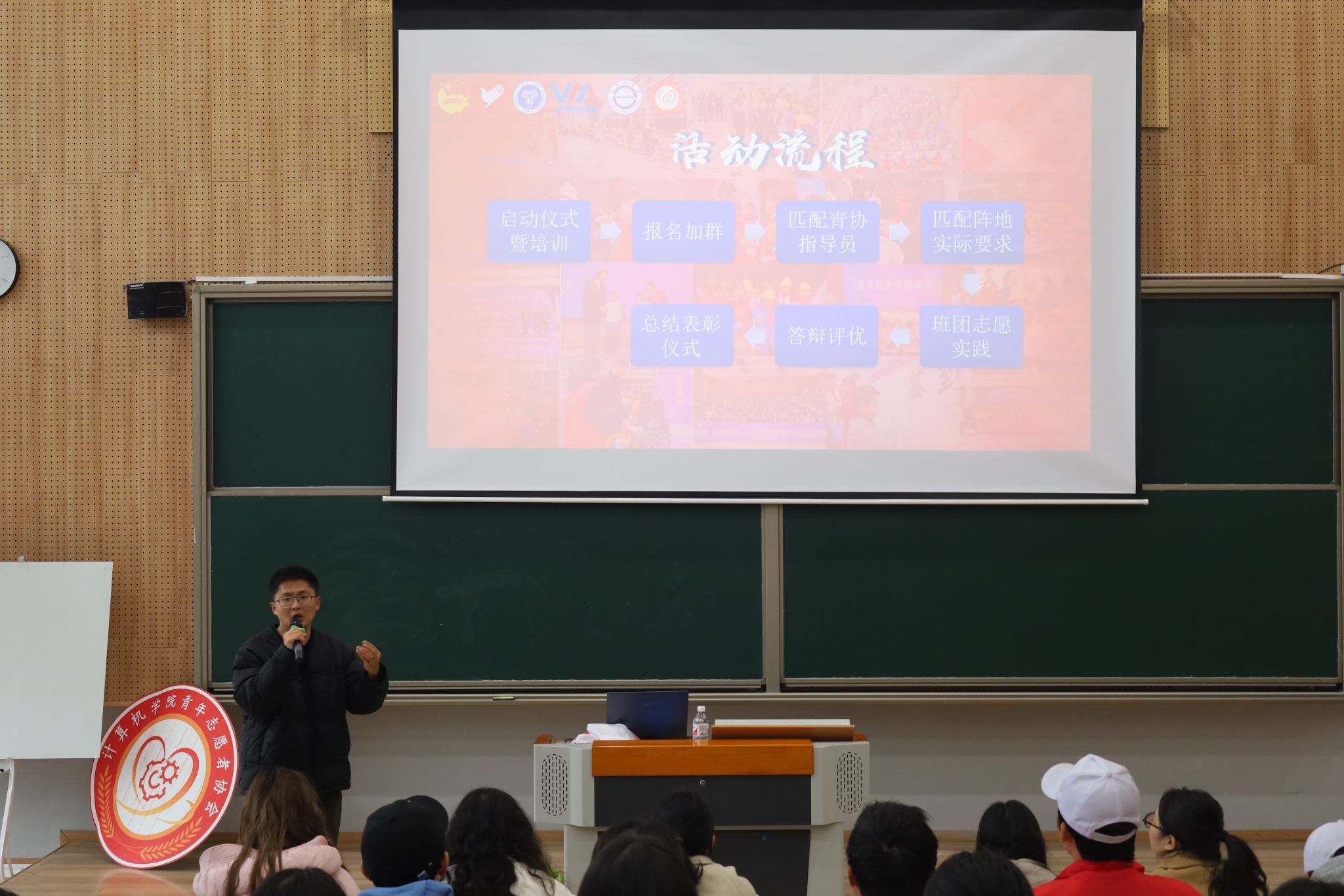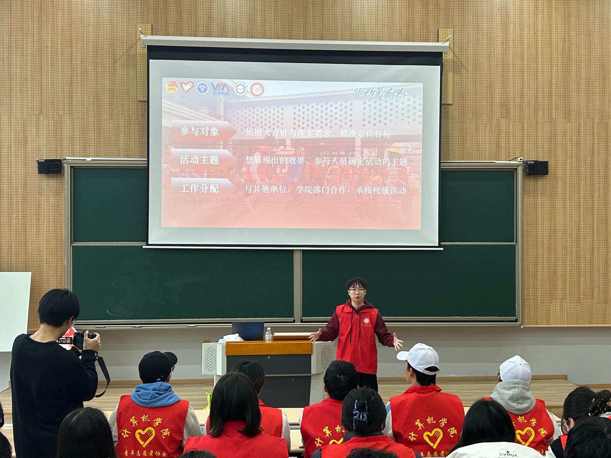然后由我院青协指导老师周靖鱼讲解此次雷锋月系列活动细则,大致分为报名、培训、匹配青协指导老师、匹配阵地实际要求、班团志愿实践、答辩评优及总结表彰仪式等流程。此外,周靖鱼老师期望各辅导员和各班团志愿专员能积极配合参与此次活动,希望通过班级与组织协同发力,推动志愿服务从个体行动向集体协作转化。接着由青协主席田秋雨向大家阐述“如何做好一场志愿活动”,田秋雨同学提出“四个会”,分别是活动筹备会、活动部署会、活动推进会及活动复盘会。并且详细讲解了“四个会”的作用及重要性。