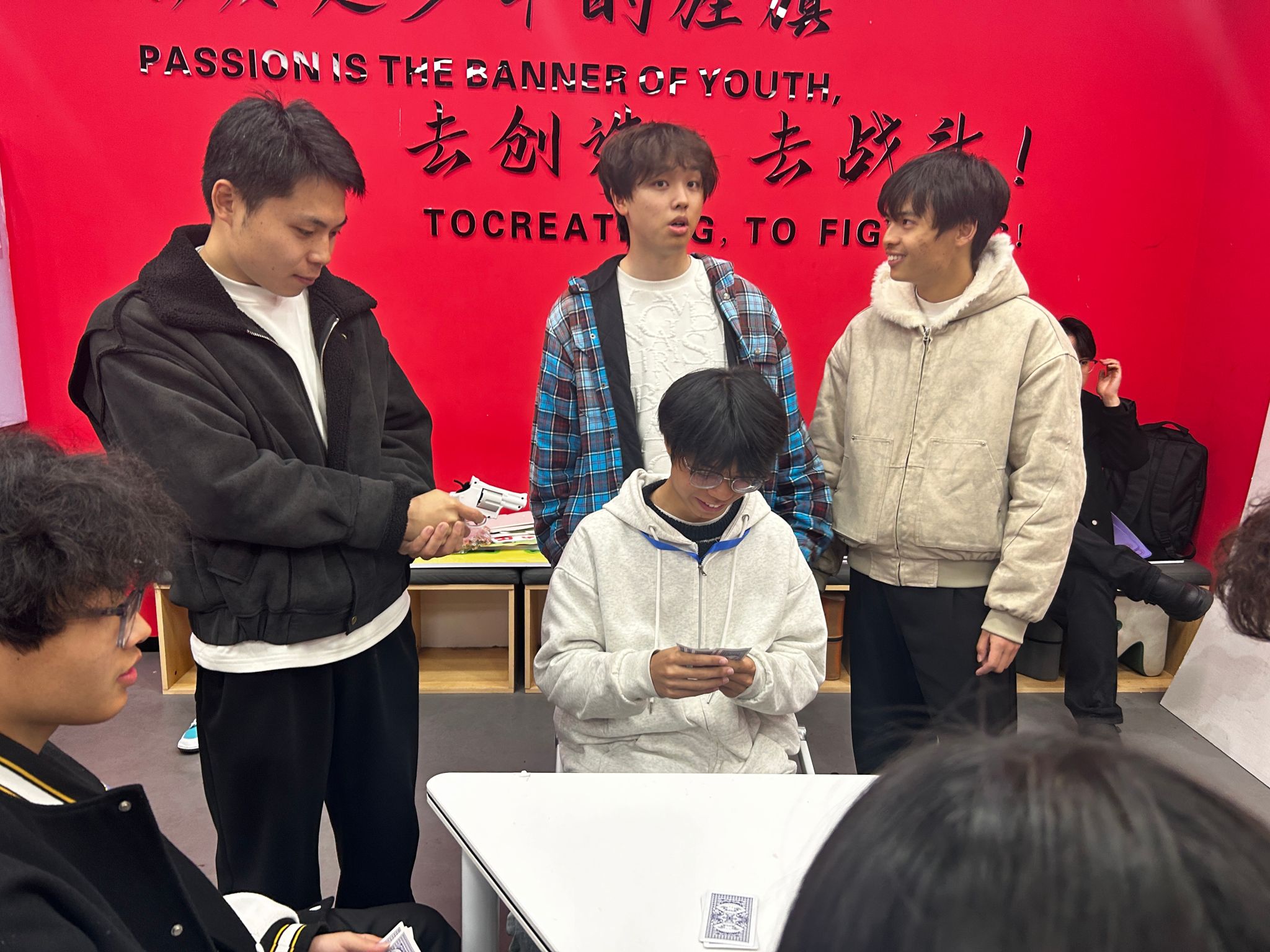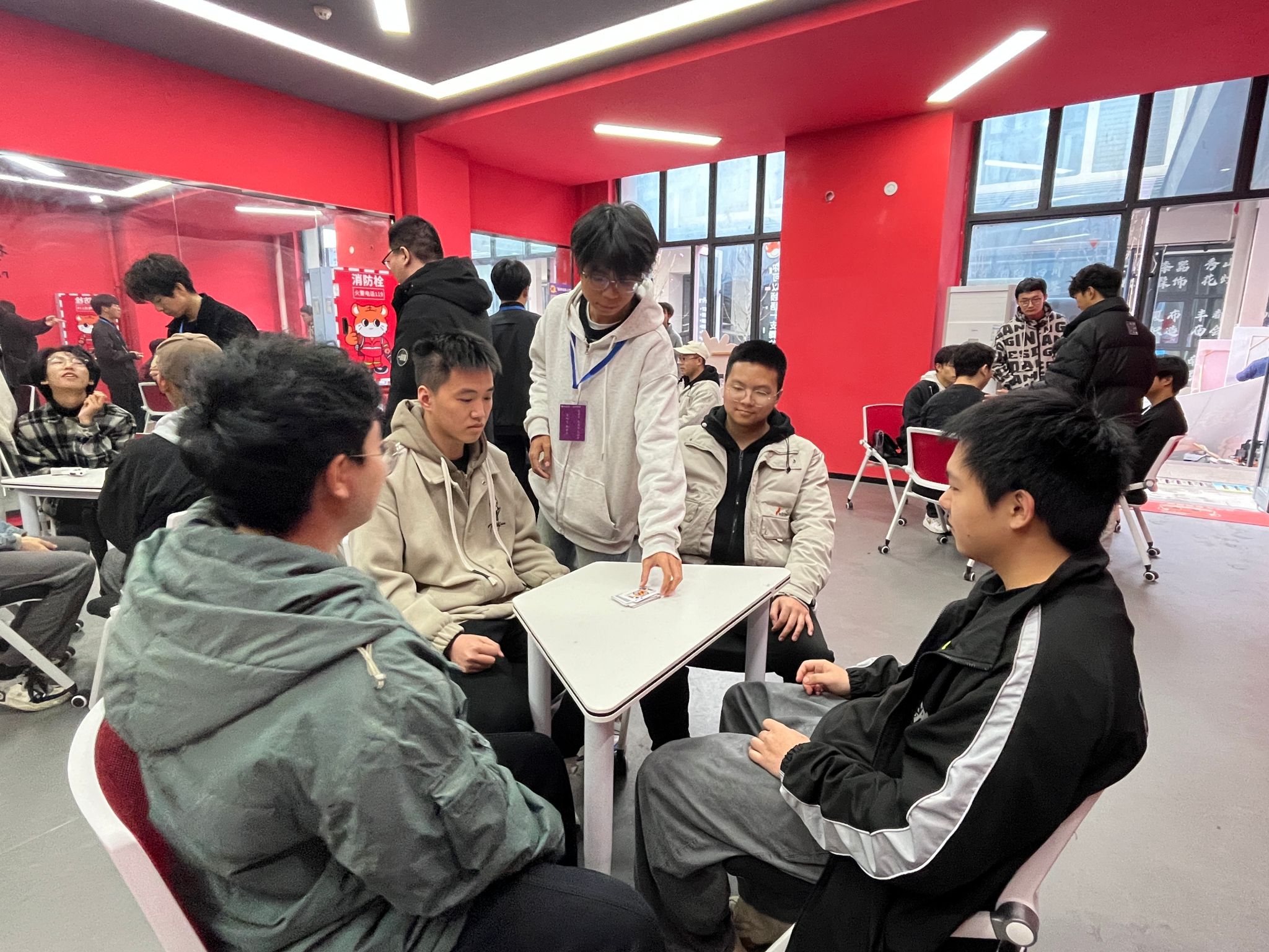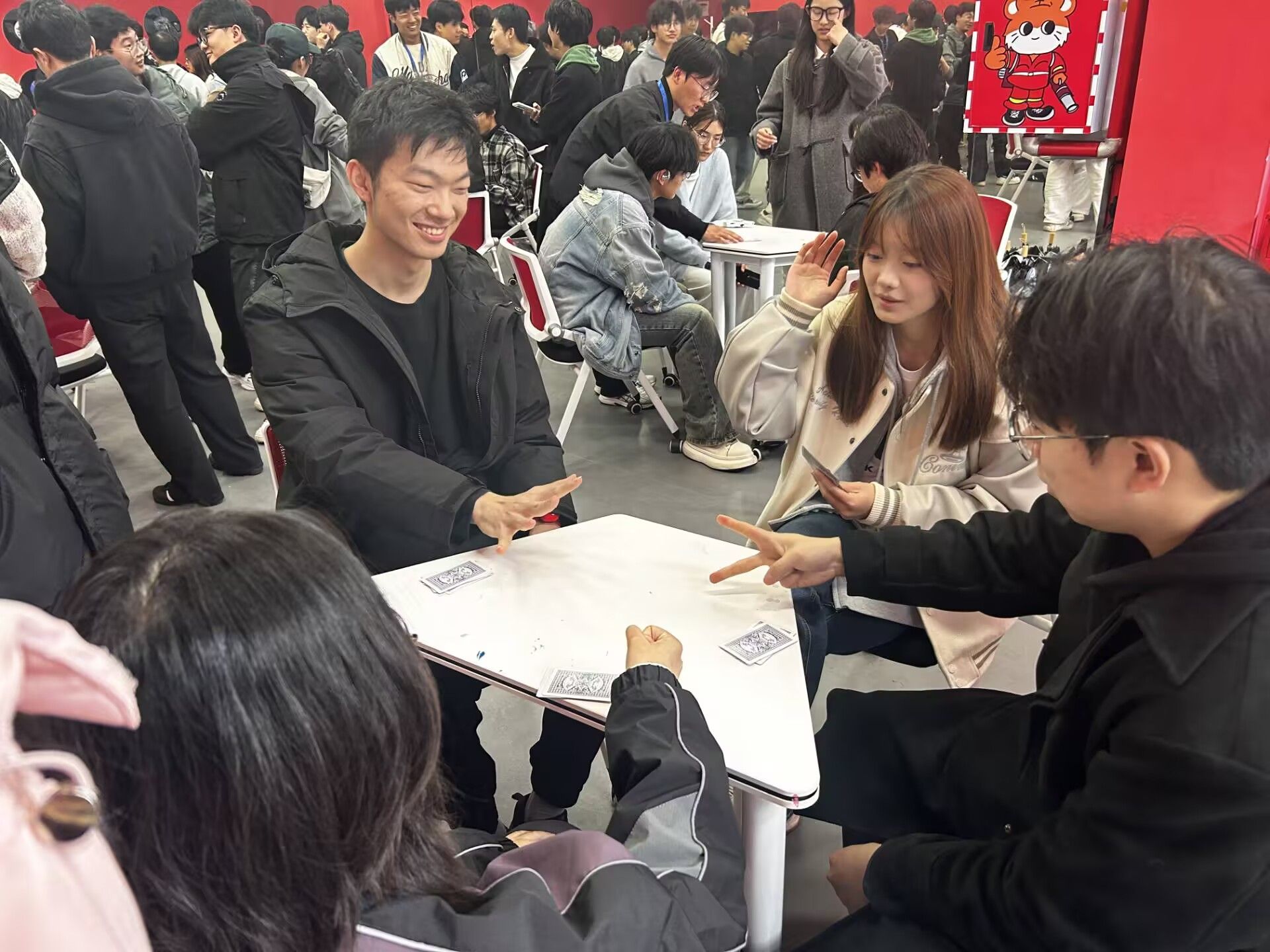 2025年3月14日星期五下午,由计算机学院和玉棠书院共同举办的指尖三项第三期在玉棠中庭如期举行。为了使活动更加简单有趣,此次活动的项目有所更新,相比于“掼蛋”游戏,“骗子酒馆”规则简单,游戏内容更加博人眼球。本次活动吸引了很多同学在课余时间参加比赛来到比赛现场,比赛现场的气氛非常的活跃,同学之间的交流也十分的密切。你是否也渴望一次能彻底放松身心,还能结交志同道合朋友的聚会?现在,就让我们走进活动现场,来一同感受赛场热情吧!