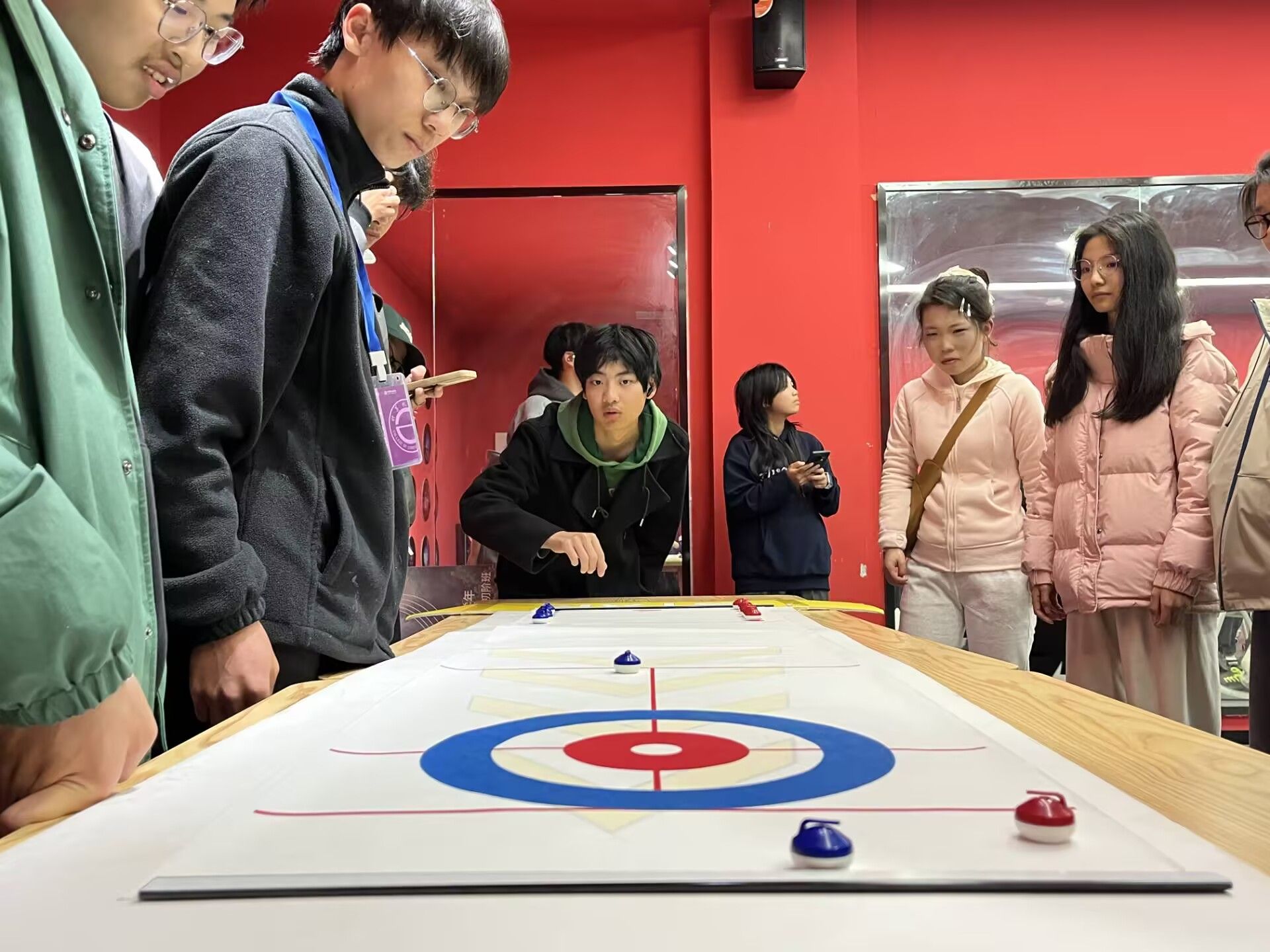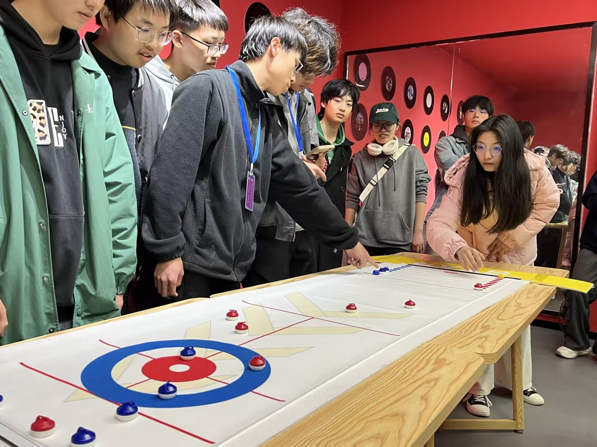 活动伊始,一场充满趣味与挑战的桌面冰壶比赛在玉棠书院的功能室中精彩上演,瞬间点燃了同学们的运动热情。小小的桌面冰壶,为校园生活注入了全新活力,也成为培养同学们团队协作与竞技精神的新载体。比赛现场,各团队参赛选手们精神饱满、全神贯注。他们紧紧盯着桌面冰壶,小心翼翼地出手,力求将冰壶精准推至最佳位置。赛场上,加油声、欢呼声此起彼伏,气氛热烈非凡。每一次冰壶的滑动,都承载着选手们的期待,也考验着团队之间的战术配合。比赛过程中,同学们不仅展现出了高超的技术,更在相互配合中增进了彼此之间的友谊和信任。