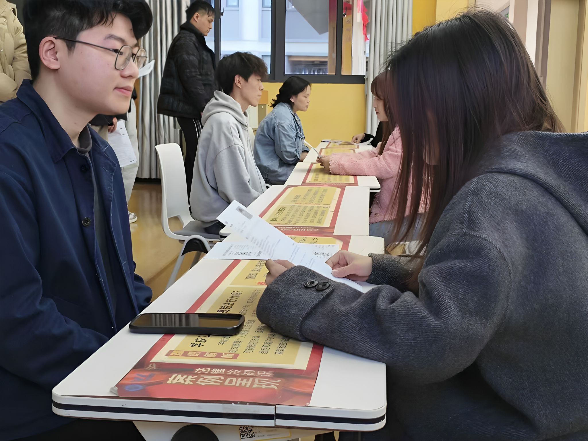 宣讲会结束后,面试环节随即在瀛溪书院1号楼一二三亖会议厅展开。面试现场氛围严谨而温馨,为学子们提供了一个展示自我、交流思想的平台。公司代表与学子们进行了深入的面对面交流,全面了解了他们的专业技能、综合素质以及职业规划等方面的情况。
