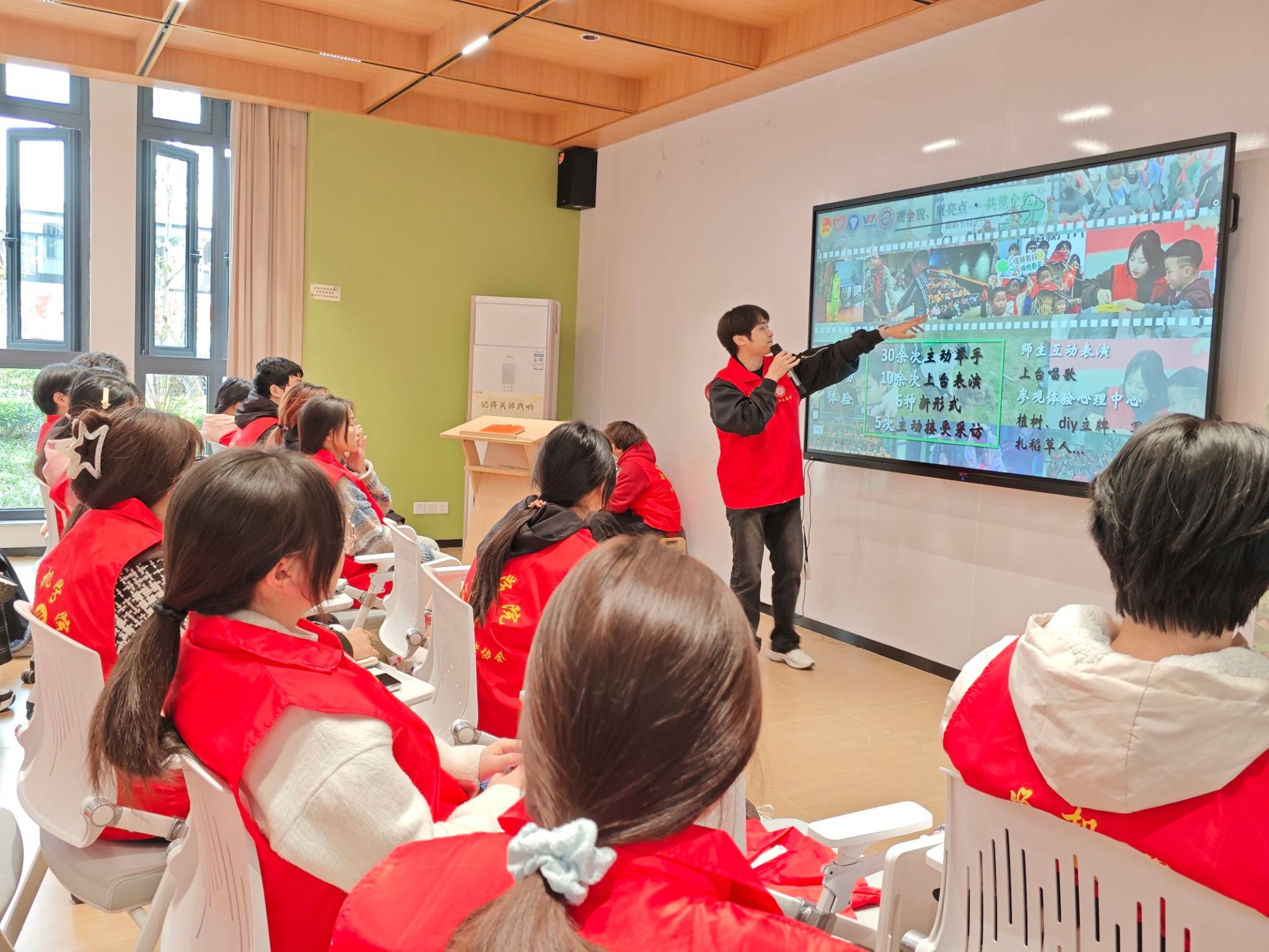 专题培训环节干货满满。田盛中同学就“三•五雷锋月班团活动”为切入口,围绕四个问题——为什么要举办它?它的亮点在哪里?我们获得了哪些成果?我们还要怎么做?——展开讲解,为志愿者们带来专业知识与技能提升。