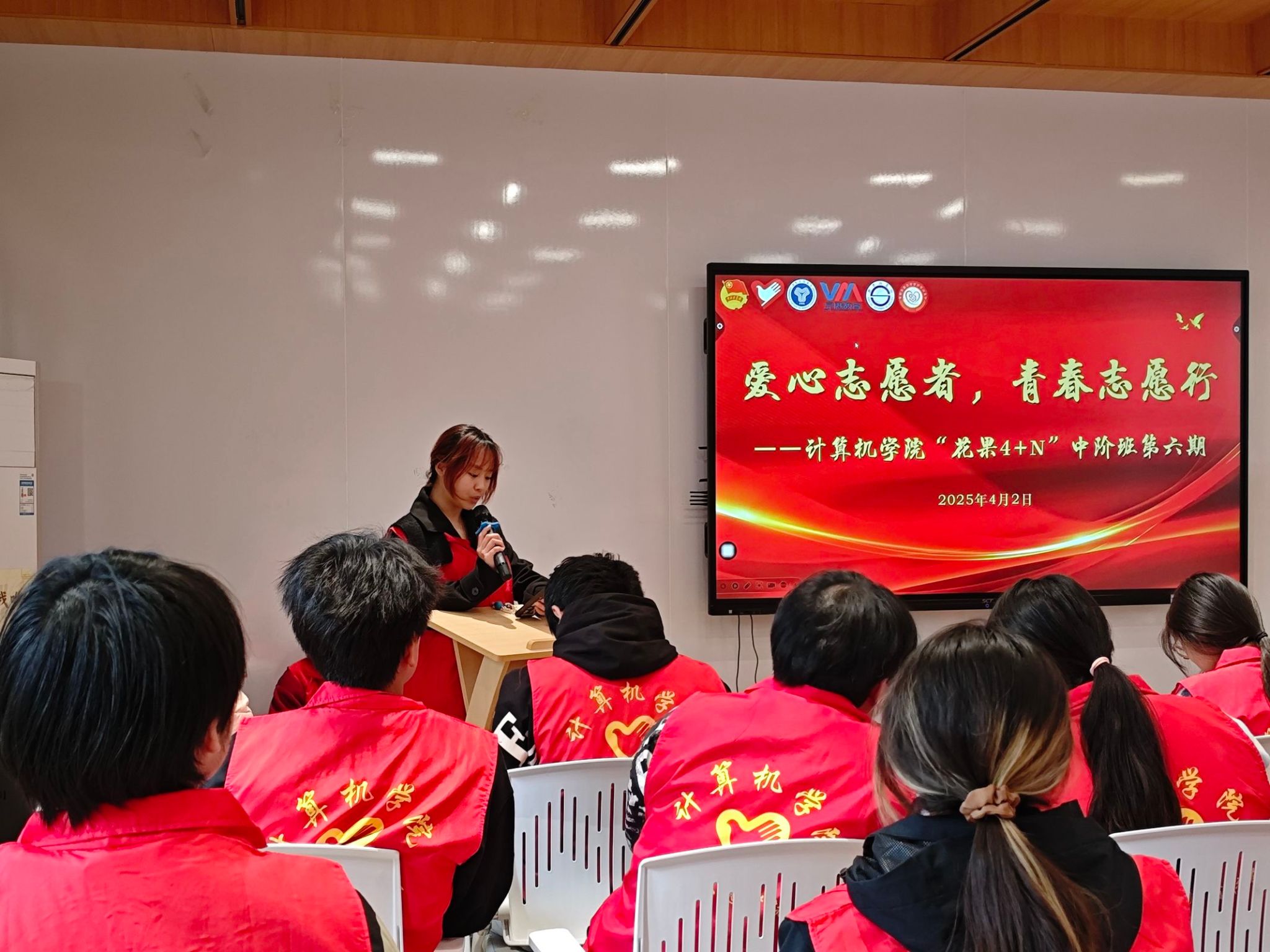 2025年4月2日,计算机学院青年志愿者协会在南江书院博学·悦享互动空间多功能室成功举办爱心志愿者,青春致远行——花果‘4+N’志愿服务培训计划中阶班第六期。此次培训旨在深化志愿文化内涵,提升志愿服务专业化水平,强化学生骨干组织协调能力。