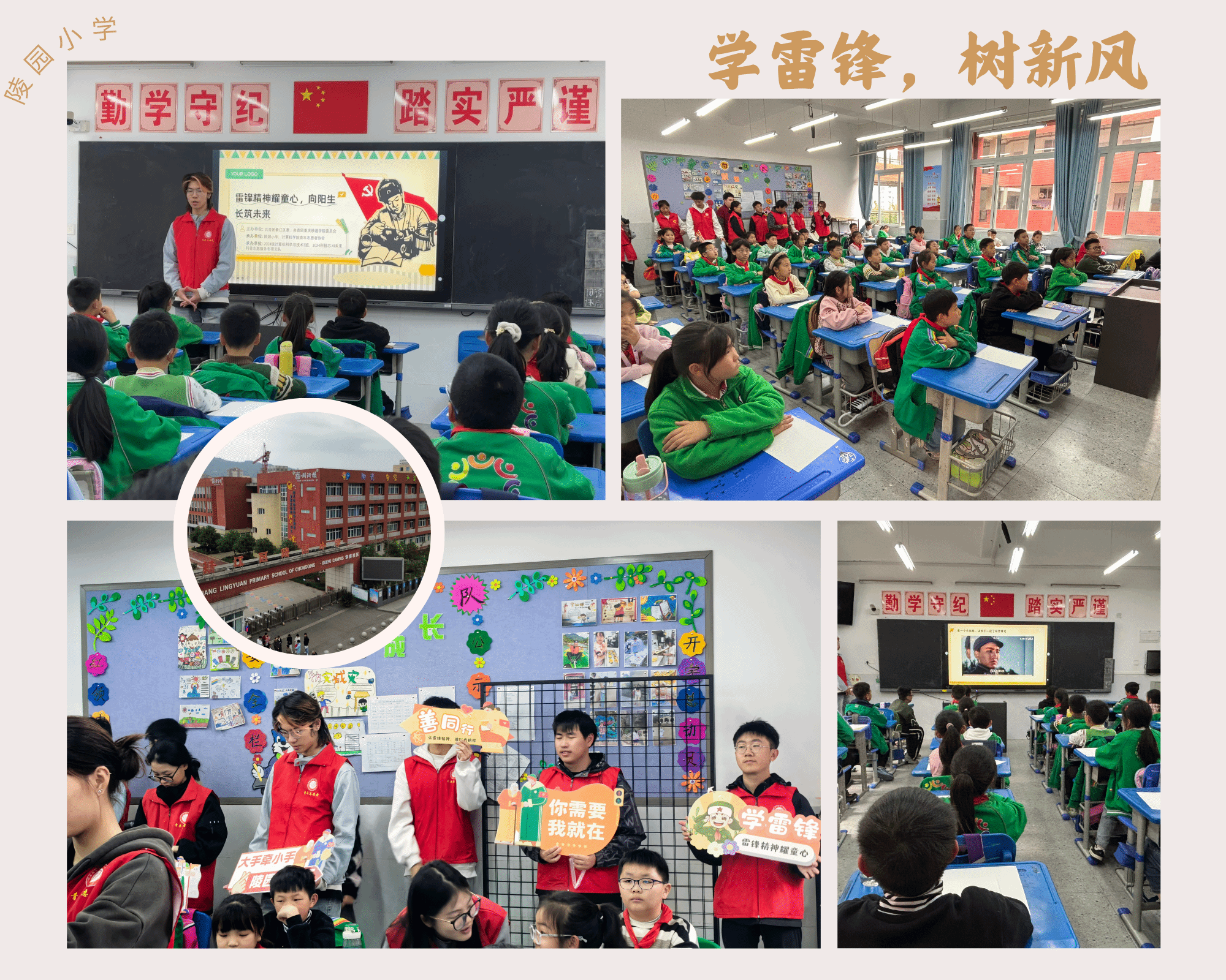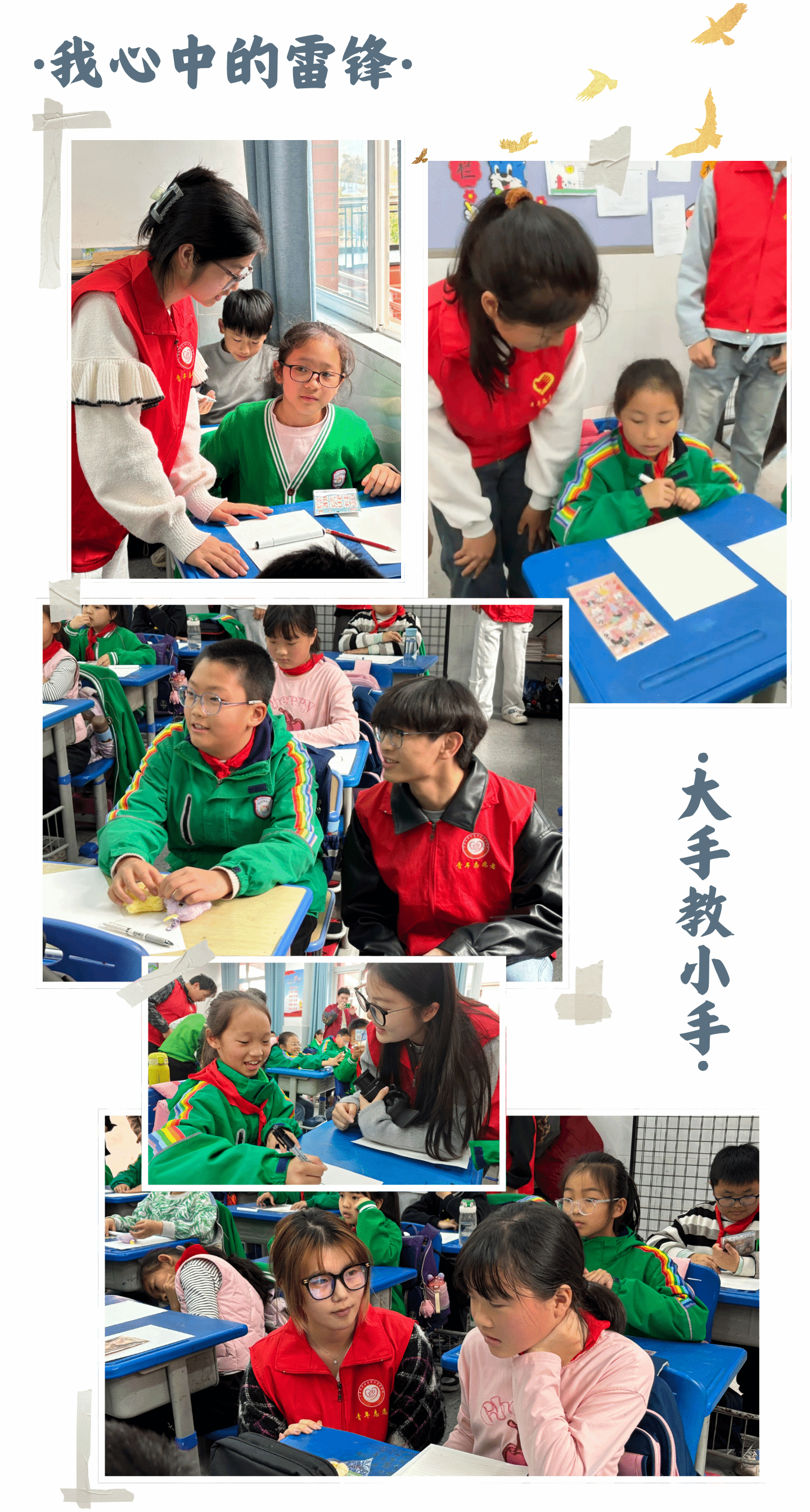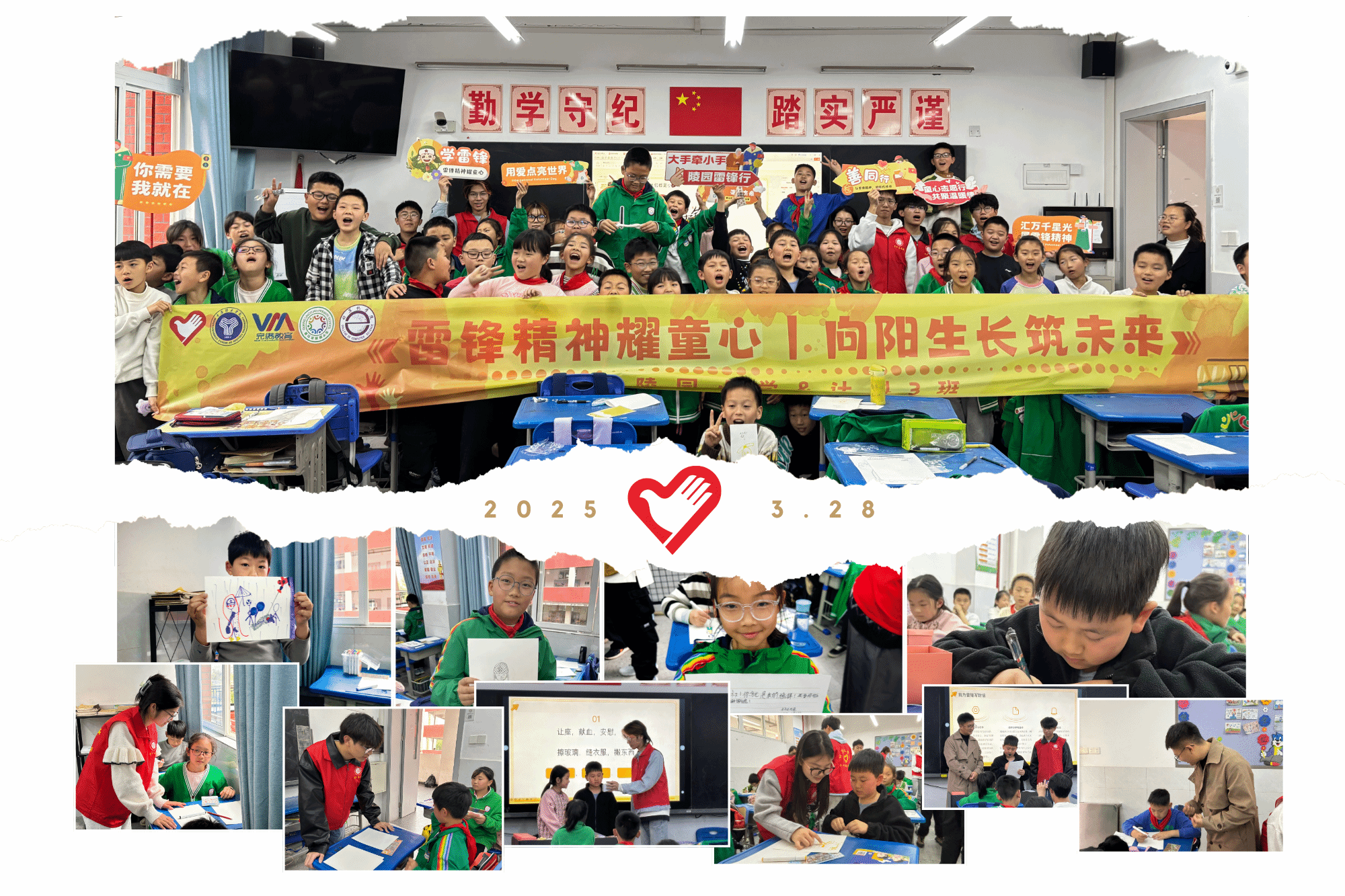三月的阳光洒满校园,春风携着雷锋精神的种子,悄然播撒在孩子们的心田。为弘扬新时代雷锋精神,培养青少年的奉献意识与社会责任感,2024级计算机学院计算机科学3班和1024科技芯.AI未来科普志愿服务专项支队联合陵园小学以及计算机学院青年志愿者协会,于3月28日走进陵园小学,共同举办“雷锋精神耀童心,向阳生长筑未来”主题志愿活动。孩子们通过绘画、书信、互动游戏等丰富形式,用童真的笔触描绘雷锋精神,用真挚的语言传递感恩之情,在欢声笑语中种下 向善向上的种子。