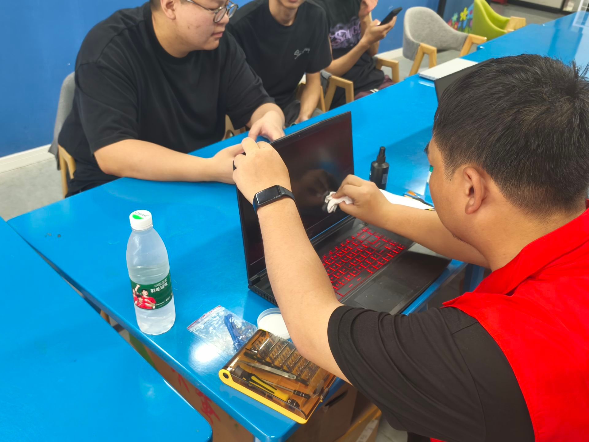 经过细致的检查、清洁,原本“疲惫”的电脑重获新生。散热性能显著提升,故障风险也大大降低。一部分同学在志愿者的帮助下,也尝试着学习如何为自己的电脑清灰。在现场边学习、边操作的轻松愉快氛围中,本次清灰活动来到了尾声。