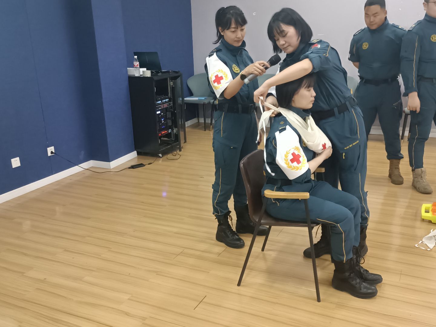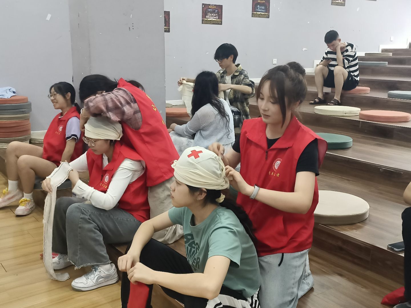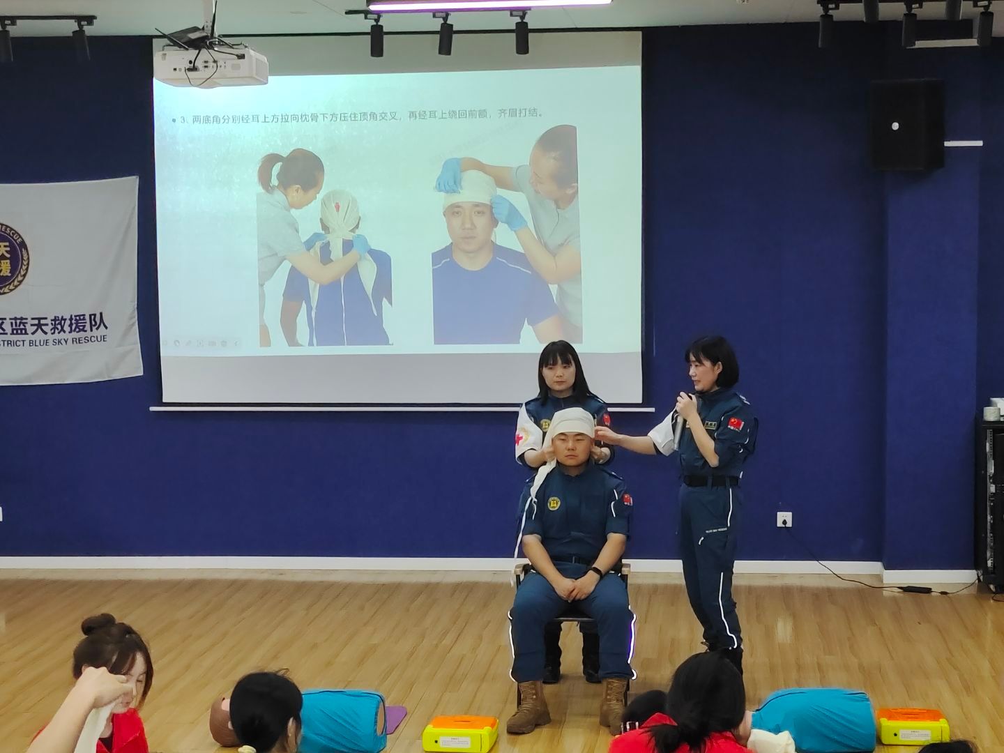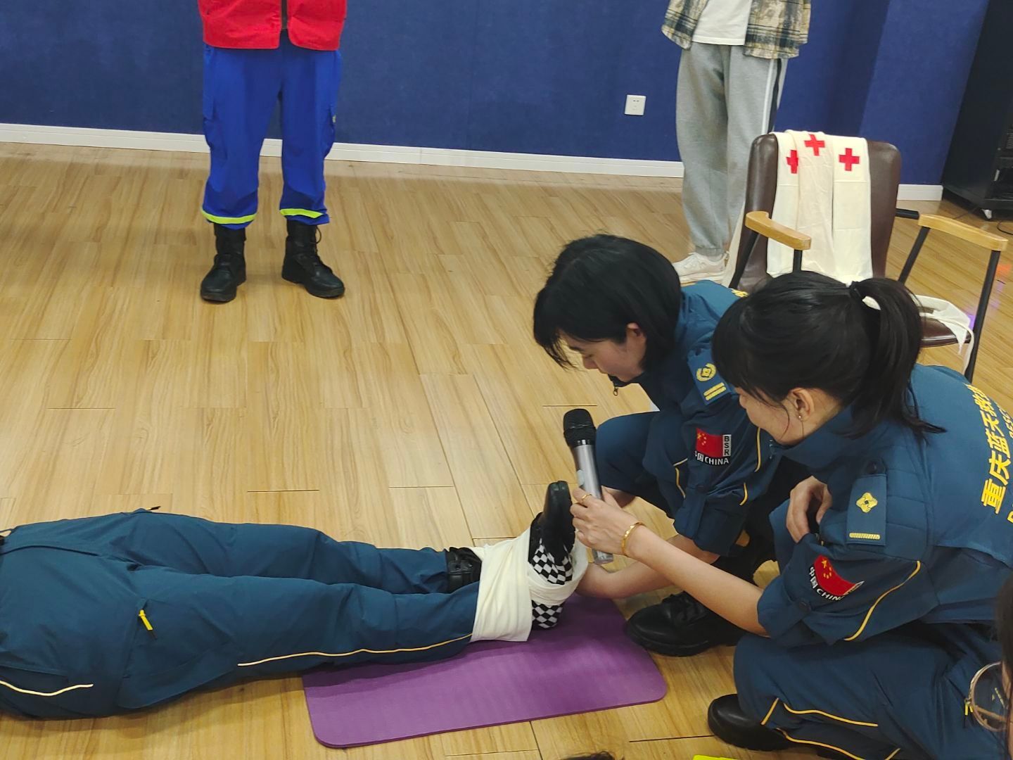 右下肢中段闭合性骨折固定培训同样精彩。蓝天杨队员展示了如何巧妙利用夹板、绷带等工具,对骨折部位进行稳固。她提醒同学们:“固定时要注意力度,既要保证固定效果,又不能对伤者造成二次伤害。”同学们分组练习,相互交流经验,在实践中逐渐熟练掌握这一技能。