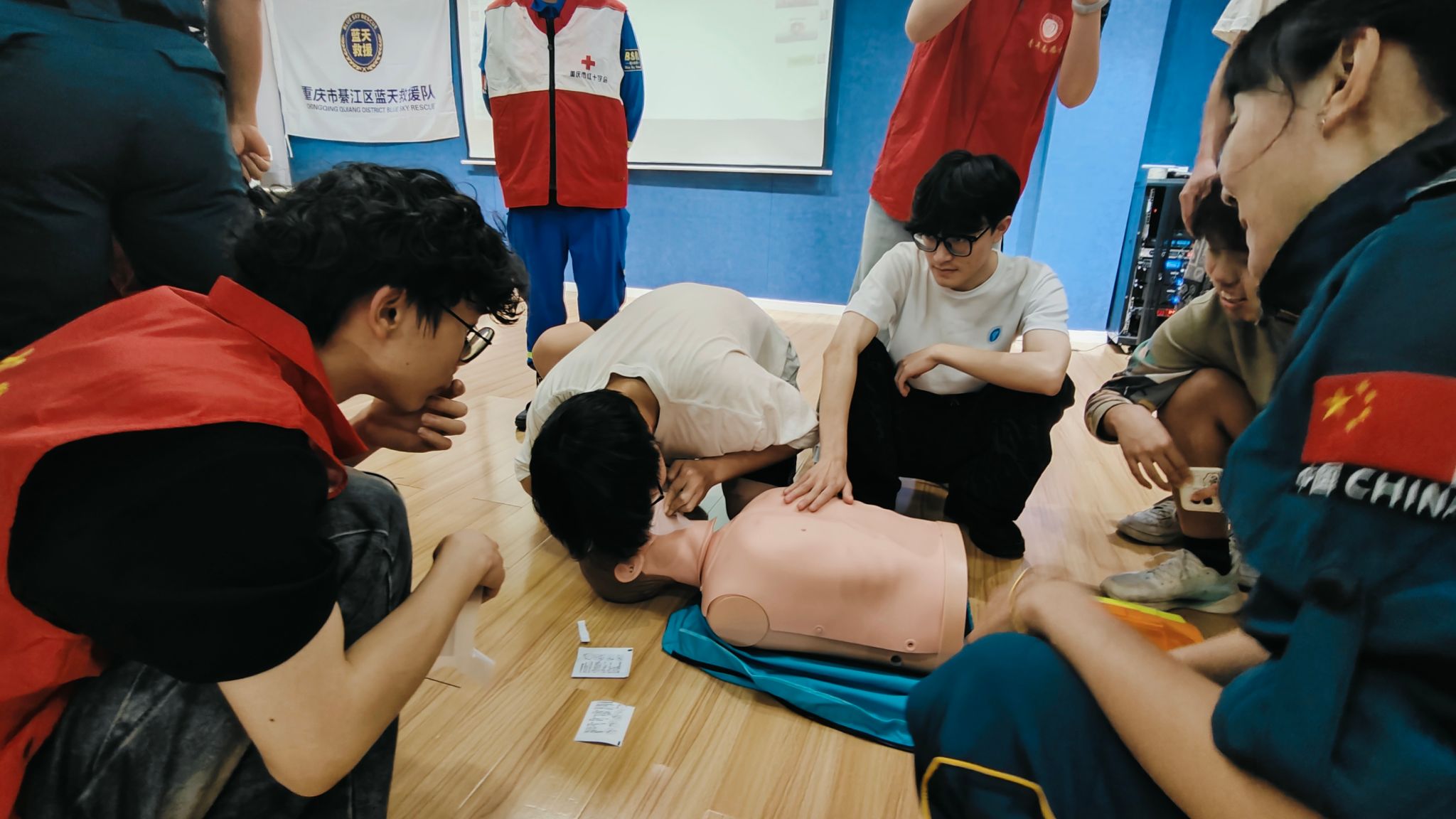 培训从14:30准时拉开帷幕,至16:00圆满结束。学院此次培训特别邀请到了綦江蓝天救援队的专业队员,他们凭借丰富的救援经验与专业技能,为同学们带来了一场别开生面且实用性极强的培训。此次培训内容与竞赛项目高度契合,重点聚焦心肺复苏(双人)、右下肢中段闭合性骨折固定(双人)以及模拟车祸现场救援(三人)。