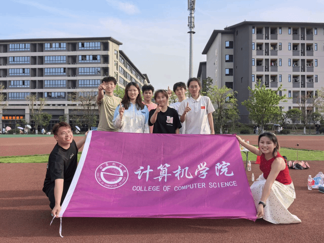 落日余晖中,师生们带着满身草屑与院旗合影,此刻那些淤青与汗水不再是苦痛的印记,而是团队勋章。参赛队员张冰冰轻抚腰间勒痕感慨:"今天最骄傲的不是赢了比赛,而是我们真正成为了‘一根绳上的战友’。”这场双冠不仅为计算机学院赢得开门红,更让所有人看见:当个体的力量在信任中交织,便能编织出无坚不摧的胜利之网。让我们期待在接下来的赛程中,计算机学院的运动员更精彩的表现吧!