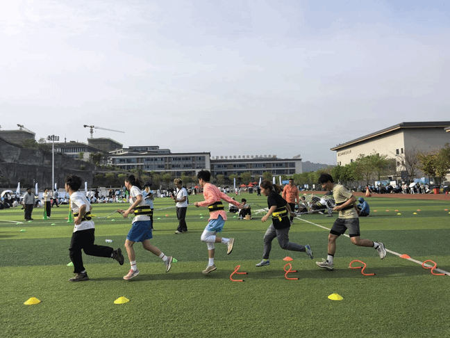 当决赛哨声再起,两支队伍宛若脱胎换骨——学生组飞跃跳箱时后排默契跟上,不对前面的同学形成阻碍,爬行地网化作流畅的"一"字长蛇;教工组每个障碍突破都精准如钟表齿轮啮合,周海老师戏称"比调试代码还要严丝合缝"。最终,学生组五人同步撞线的瞬间激起雷鸣欢呼,教工组则以零失误的完美表现征服全场。