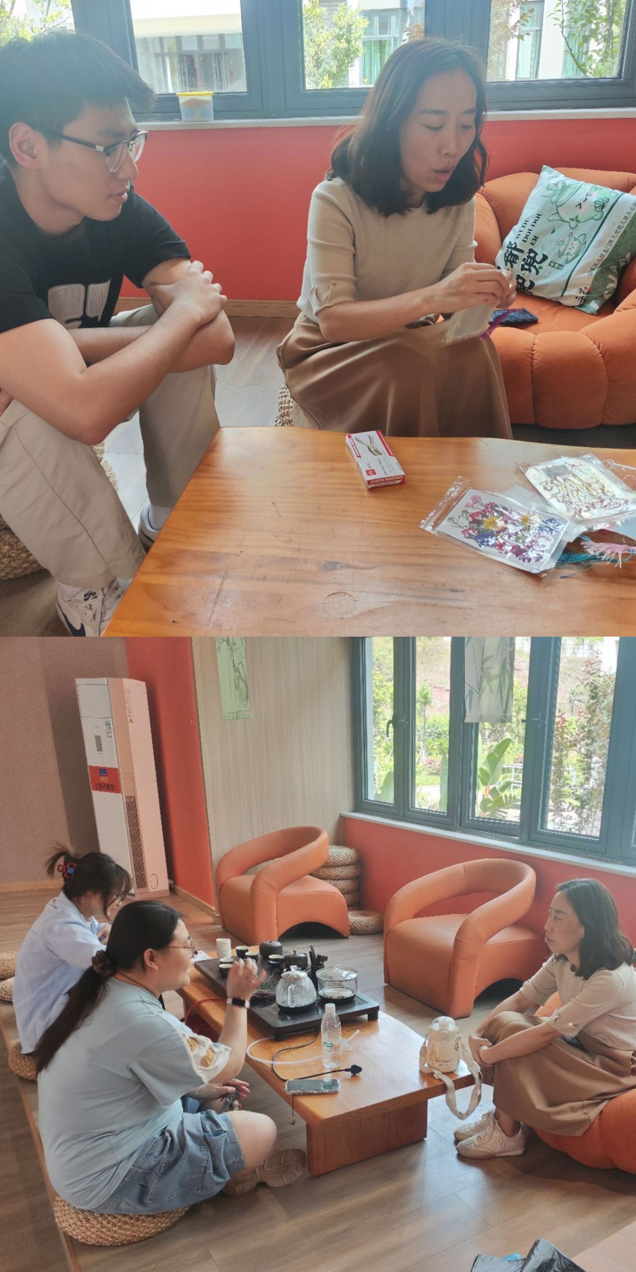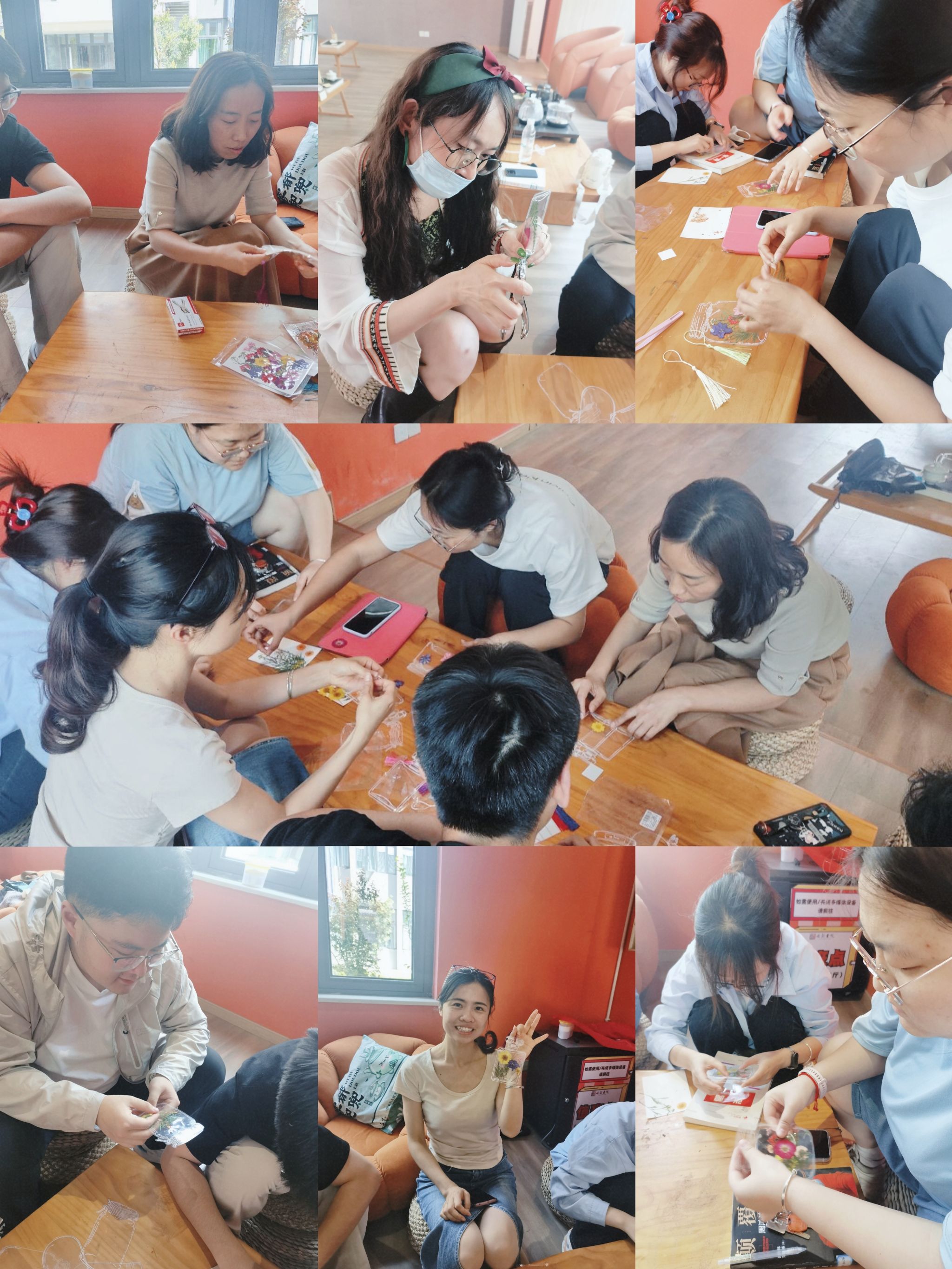 活动现场,同学们积极参与,认真挑选干花、搭配色彩、设计造型。大家相互交流、相互帮助,分享着自己的创意和想法。在三位异科导师们的耐心指导下,同学们的手中逐渐出现了一件件精美的作品。