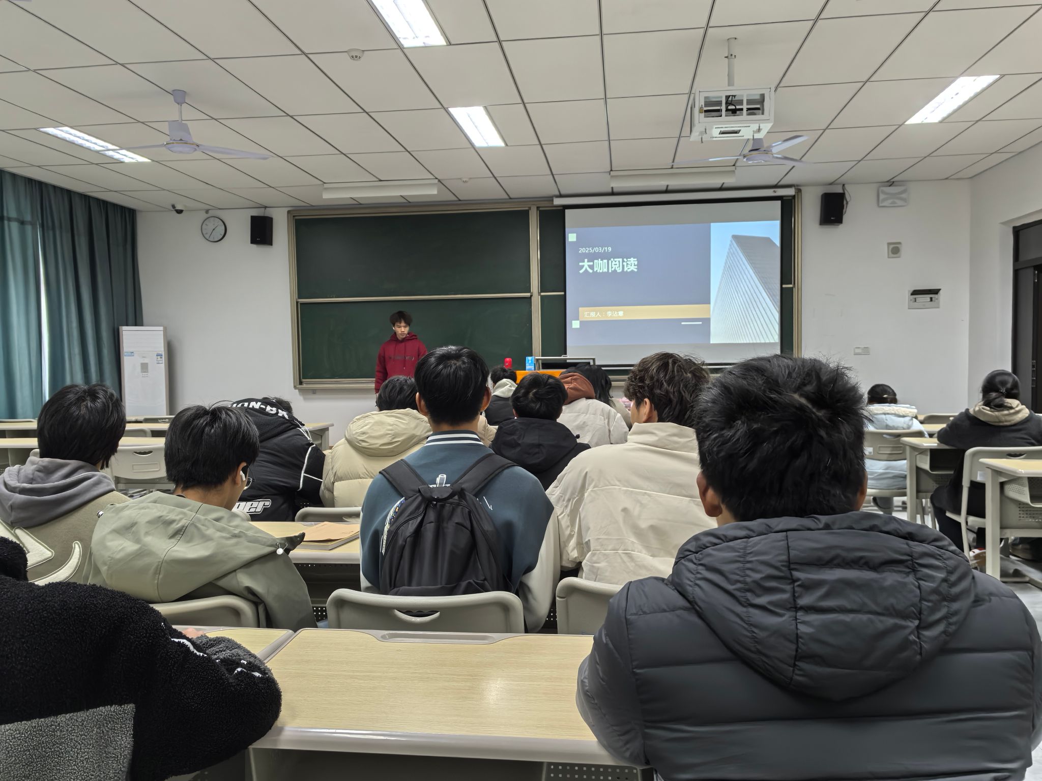 2025年4月9日,由计算机学院2024级计算机科学与技术9-10班与异科导师李沾意老师共同开展的《孙正义传》读书分享交流活动在行者楼106教室圆满举行。PPT内充满科技感与商业元素,大屏幕上循环播放着孙正义的经典演讲片段与软银集团的发展历程视频,为学生展示这场知识与思想碰撞的盛宴。