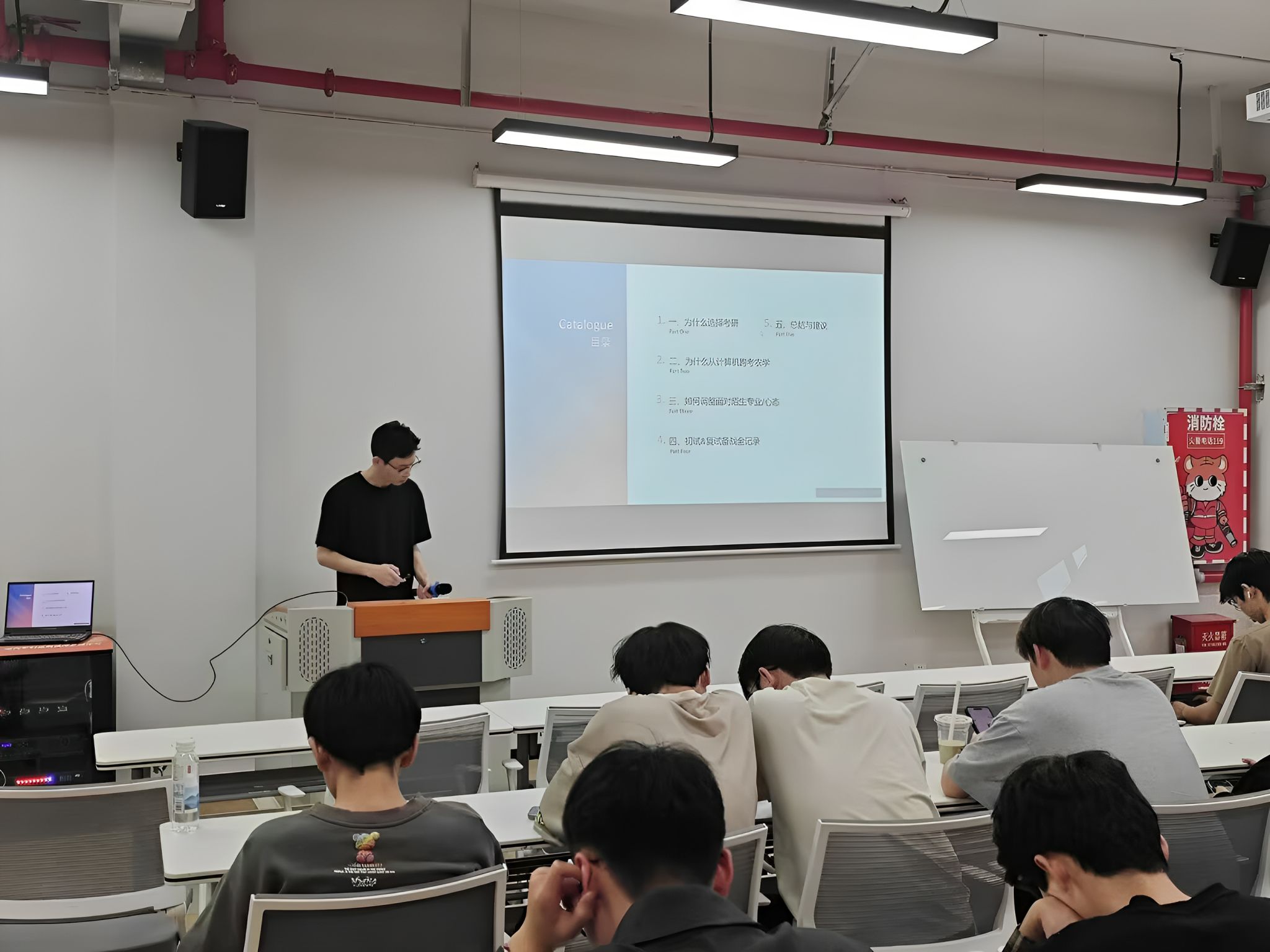 活动尾声,袁德鑫学长寄语学弟学妹:“考研是一场孤独的修行,但请记住,你不是一个人在战斗。”本次活动以前辈的成功经验为蓝本,为同学们注入了破局的强大信心。相信在袁德鑫学长的经验指引下,计算机学院的考研学子们定能在备考路上披荆斩棘,向着梦想的彼岸奋勇前行。