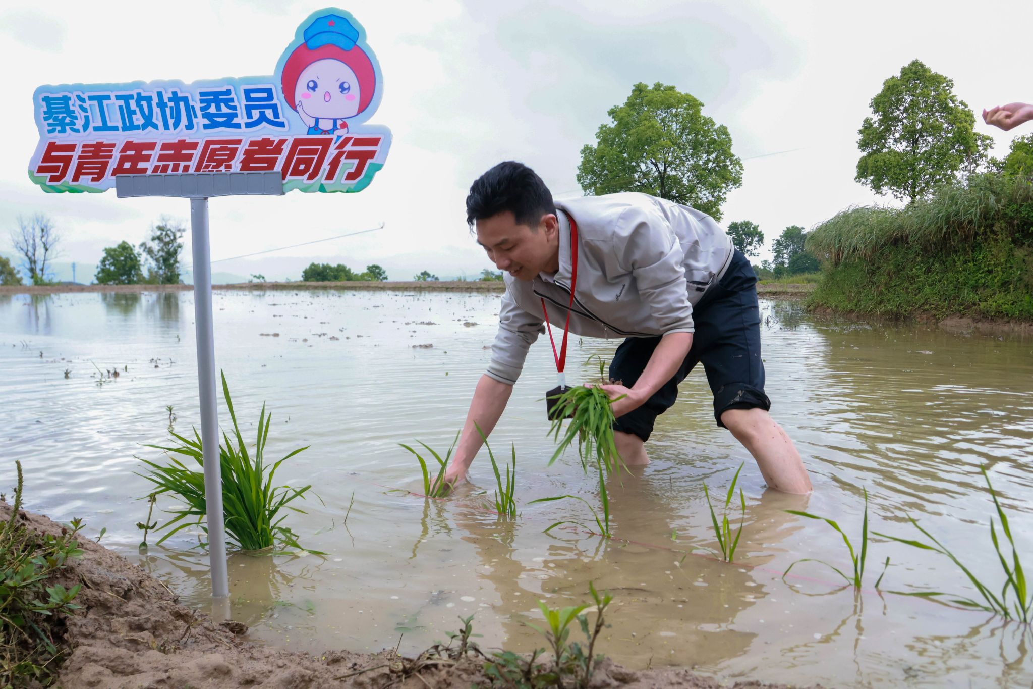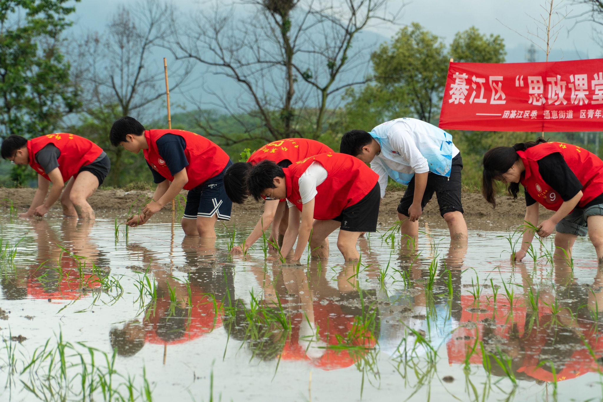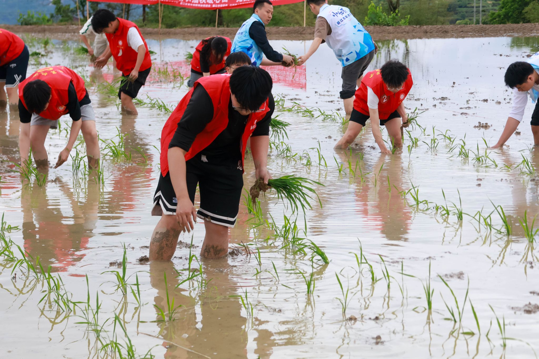五四风雷激荡百年,青春热血深耕沃野!4月29日,綦江乡间田埂迎来了一群特殊“耕作者”——共青团界别政协委员、通惠街道青年、綦江中学团员青年与少先队员、江苏省人民医院工作人员以及来自重庆移通学院计算机学院、大健康学院、远景学院、大数据学院、信息安全学院等8个二级学院的二十余名大学生,踏上通惠街道桥坝村水田,开启了一场“泥土味”与“青春味”交织的沉浸式思政实践课。挽裤腿,踩泥浆,插青秧,五四精神在春耕劳作中“落地生根”,为乡村振兴“插秧育苗”。
