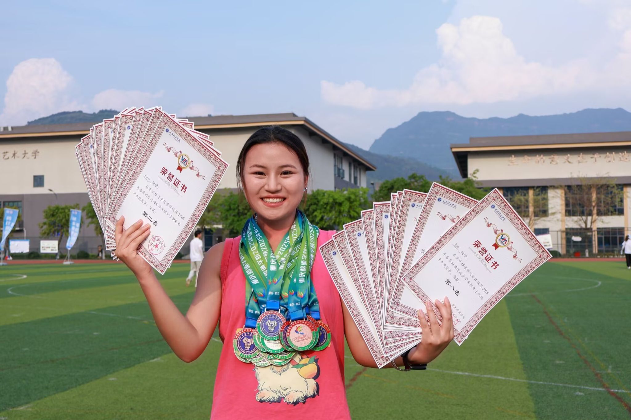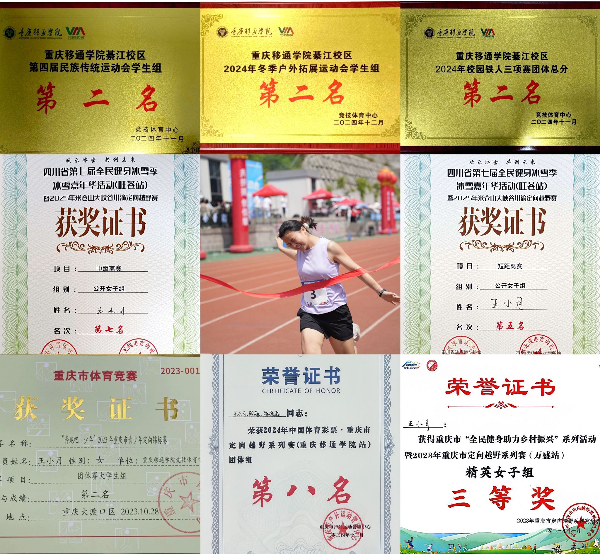 在致力于成为非体育的最体育大学里面争做一位非体育的最体育学生,重庆市青少年定向锦标赛大学生组第二名、重庆国际城市定向赛二等奖、重庆市定向越野系列赛(万盛站) 精英女子组三等奖、米仓大峡谷川渝定向越野赛短距离赛第五名、中国浆板俱乐部联赛路跑第八名、PWT世界定向精英巡回系列赛国际女子第十二名......这些荣誉,是她用脚步丈量山河的注脚,是晨露与晚风见证的勋章,每一次冲刺都是与地平线的对谈,每一枚奖牌都盛着未完待续的远方。