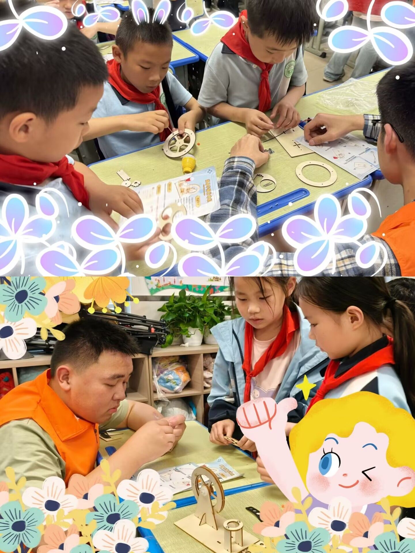 理论学习后,学生们 3 人一组展开 “手搓发电机” 挑战。教室内,“注意磁铁方向”“拧紧螺丝” 等协作指令不断,志愿者穿梭指导。20 分钟后,教室角落首盏灯泡亮起,随后更多欢呼声响起,“小智” 恢复活力,孩子们成功完成救援任务。
