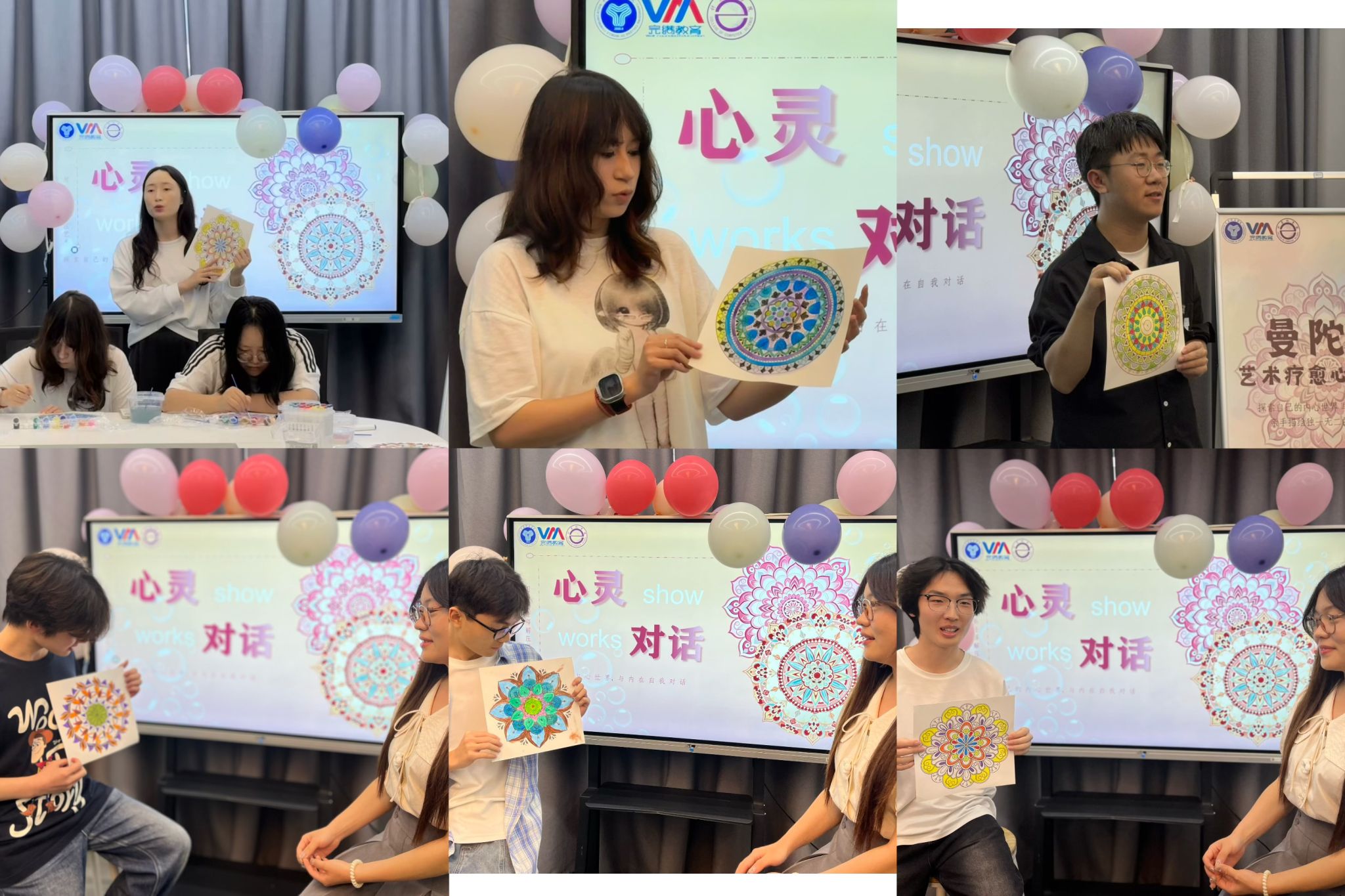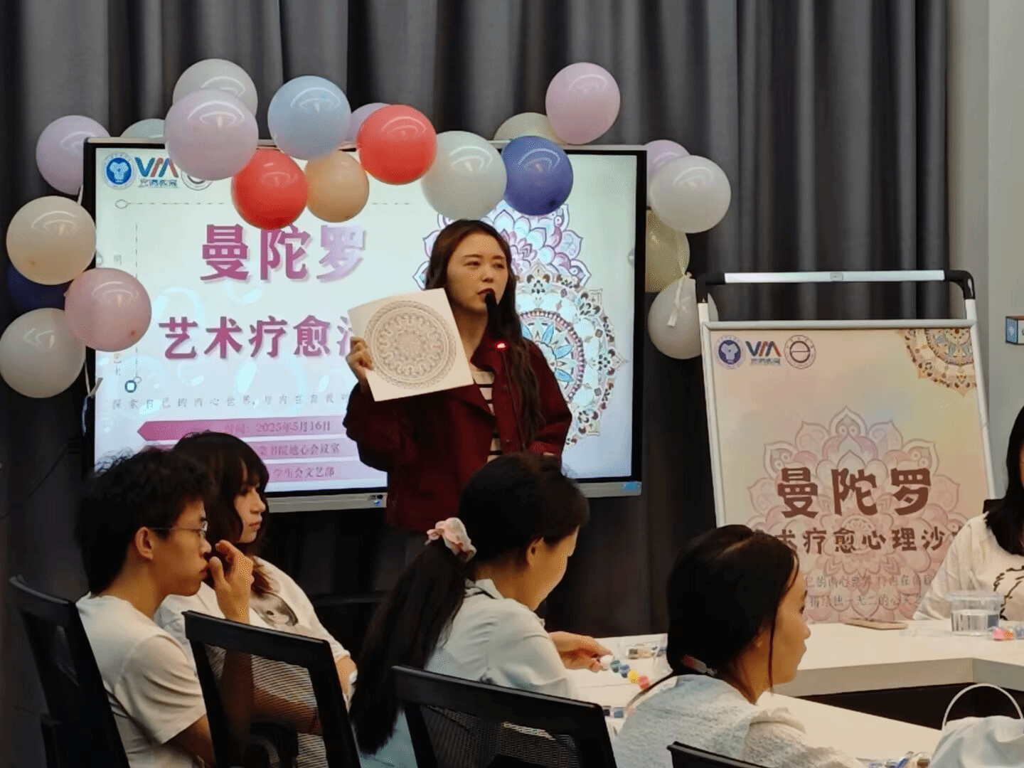 紧接着,备受期待的心理专项兼辅导员丁滢老师登台分享。丁老师凭借深厚的艺术造诣与丰富的疗愈经验,用通俗易懂的语言阐述了艺术与心灵的奇妙联系。她指出,在快节奏的生活中,曼陀罗绘画就像一把钥匙,能帮助我们打开被忙碌与压力尘封的内心世界。丁老师分享的真实案例与实用技巧,不仅让大家对艺术疗愈有了更深刻的认识,更点燃了每个人心中对创作的热情。