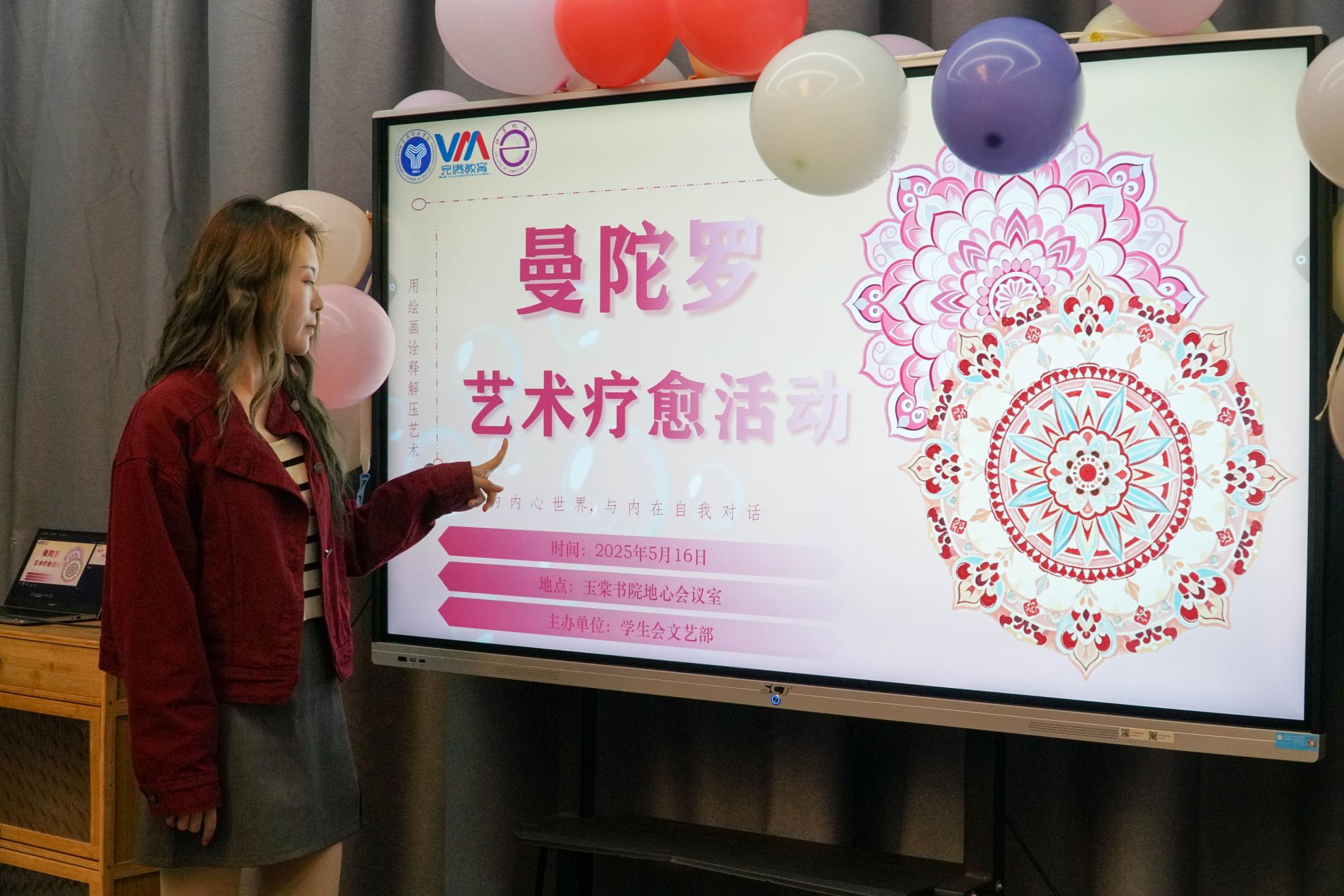 5月16日下午14:30,文艺部在玉棠地心会议室举办了一场别开生面的艺疗愈活动,以曼陀罗绘画为媒介,讲绎心灵的世界,带领参与者在艺术创作中舒缓压力、探索自我,收获了满满的温暖与感动。