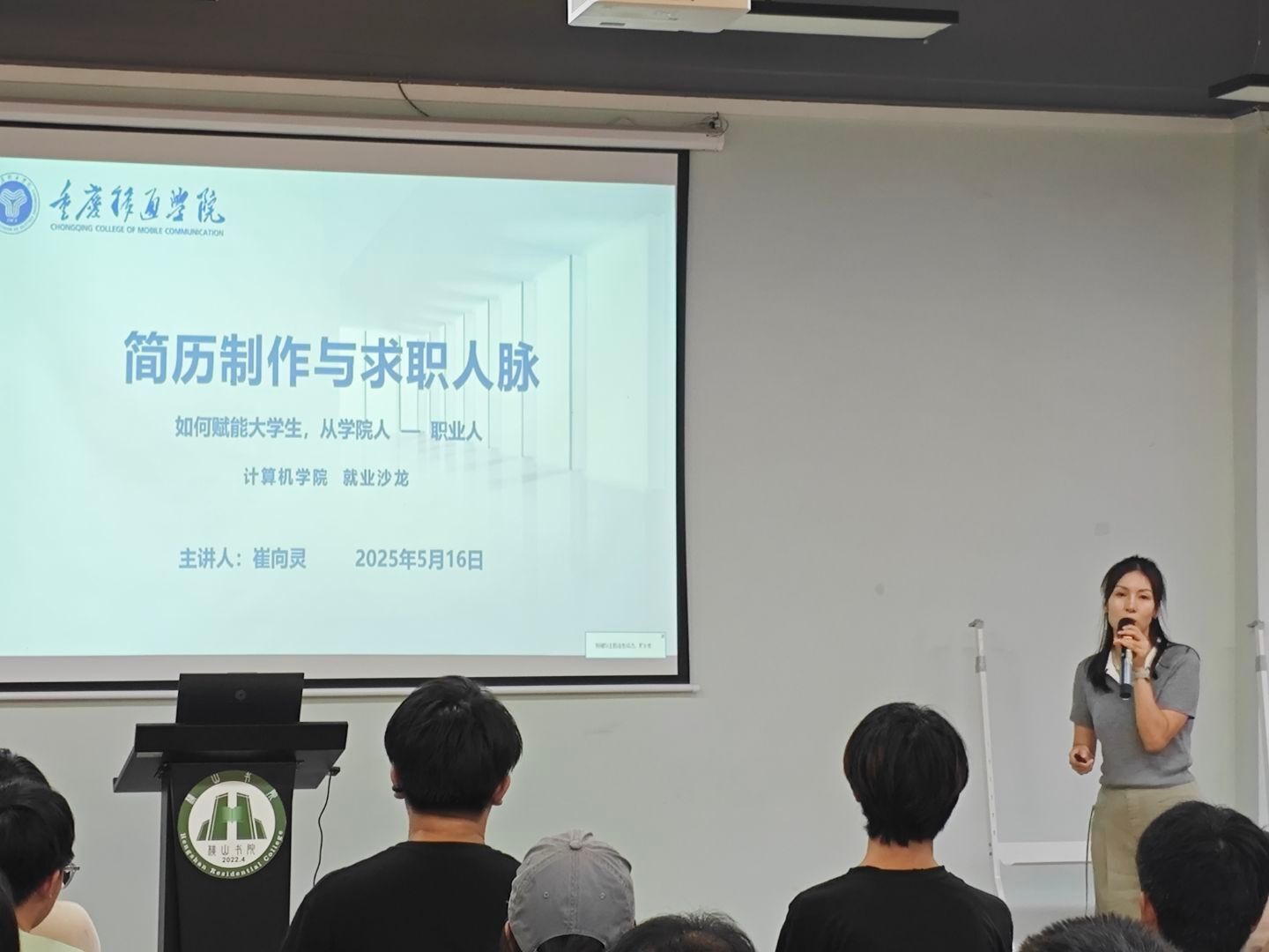 2025年5月16日14:00,綦江校区就业沙龙第120期暨计算机学院爬山虎成长计划第二十五期“一页绘蓝图,简历启新章”活动于横山书院·知物多功能活动室圆满落幕。本次活动聚焦同学们求职中的核心痛点——简历设计与面试技巧,特邀就业创业导师库成员崔向灵老师担任主讲,为同学们系统解析简历撰写的底层逻辑与面试应答的核心策略。活动以实战为导向,通过案例拆解与互动指导,助力学子突破求职瓶颈,用一页简历叩响理想企业之门。