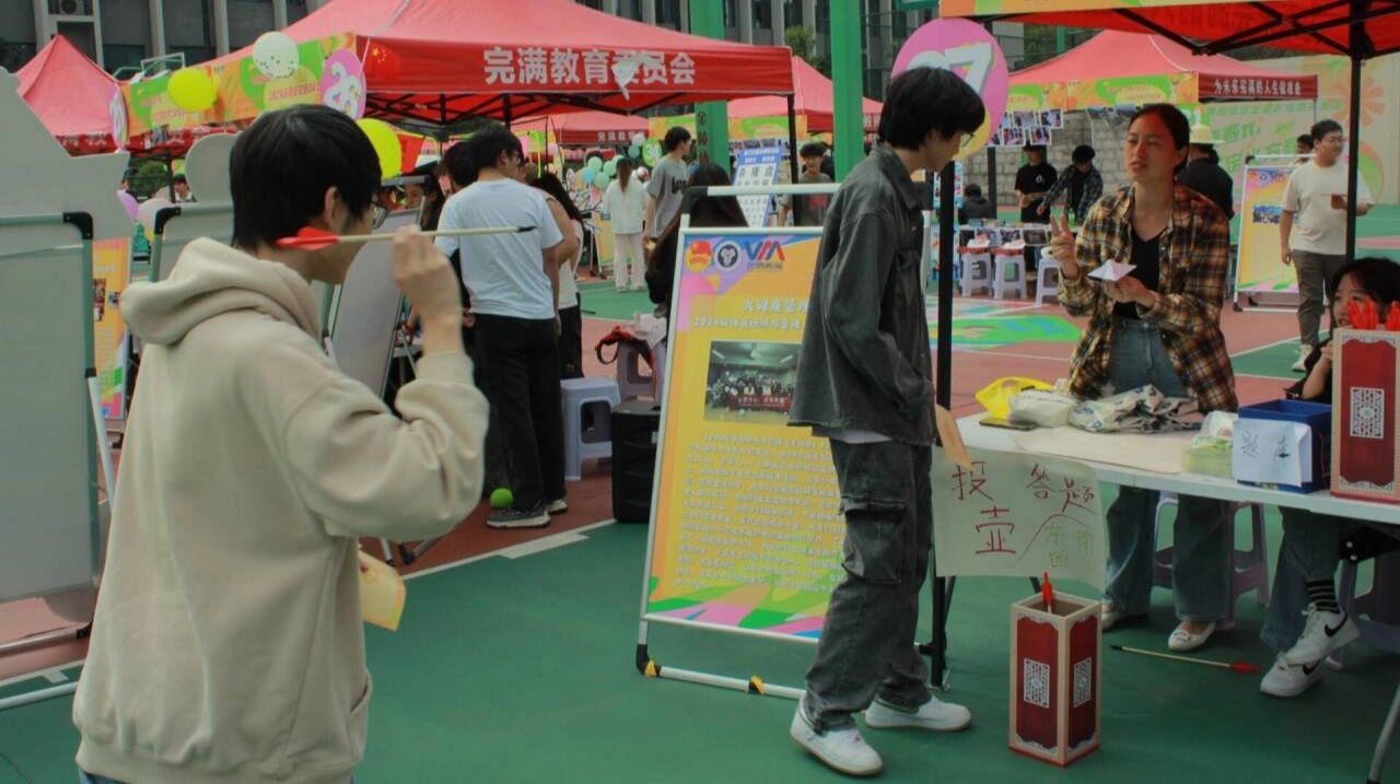 一旁的"爱心投壶答题"游戏区欢声笑语不断。参与者们手持系着红丝带的竹箭,每一次投掷都牵动着围观者的心弦。箭矢入壶的清脆声响,仿佛爱心到账的提示音,引发阵阵欢呼。负责该区域的支部成员说:"每支箭都代表着一份心意,我们会把大家的爱心转化为实实在在的帮助。"活动现场,同学们踊跃参与,在趣味互动中传递温暖,让公益变得生动而亲切。