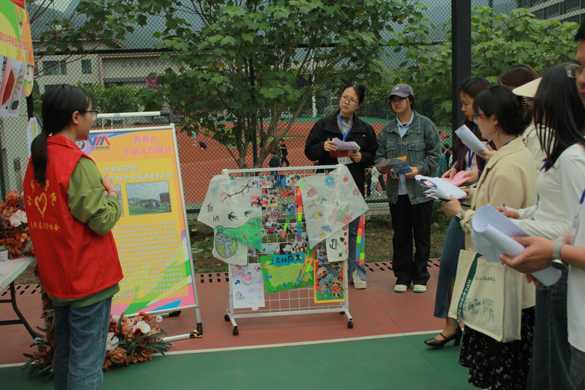 在游园会现场,2022级计算机科学与技术09班团支部用最朴实的展品讲述着最动人的爱心故事。展板上贴满了孩子们纯真的笑脸照片,每一张照片背后都是一个温暖的帮扶故事。照片旁边有许多孩子们认真绘制的手抄报和精心制作的风筝。幸李寒导师在活动策划阶段便提出建议,鼓励支部成员结合专业特长设计爱心互动环节,支部成员正在向参观者讲述他们陪伴留守儿童的点滴:教孩子们画画、陪他们做游戏、辅导他们写作业...这些看似平凡的陪伴,却为孩子们带去了最珍贵的童年温暖。"我们希望能搭建一座传递爱心的桥梁,让更多人参与到关爱行动中来。"负责讲解的何佳佳同学这样说道。