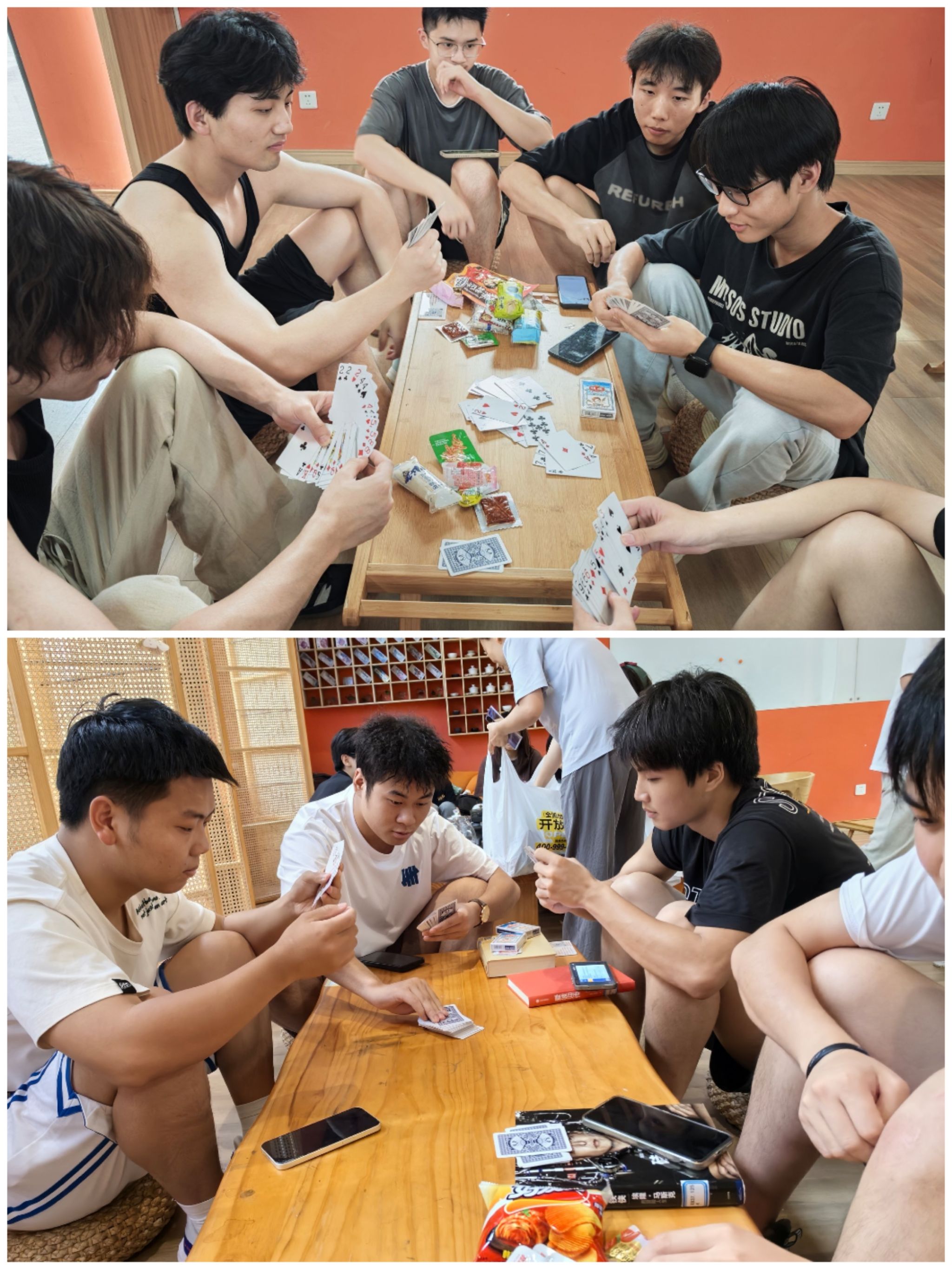 在知识与趣味交融的氛围中,5月21日下午16:30,计算机学院2024级计算机科学与技术专升本6-9班的部分同学在古剑书院白虹·半间闲室举办了一场别开生面的大咖阅读活动与掼蛋比赛。本次活动由异科导师周梦娇、彭润亚、陈锐三位老师联合策划组织,旨在丰富同学们的课余生活,培养大家的阅读兴趣与团队协作能力。