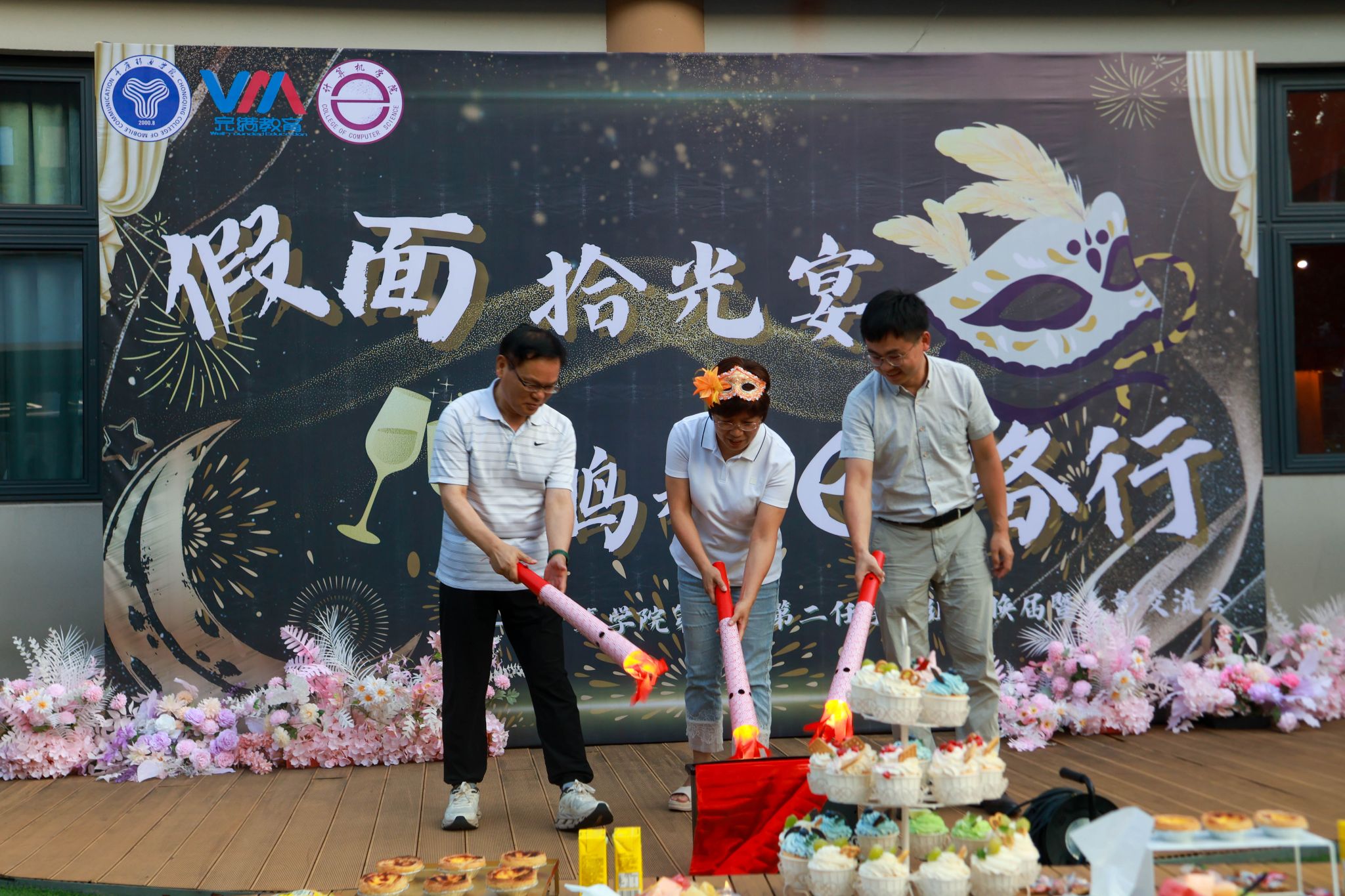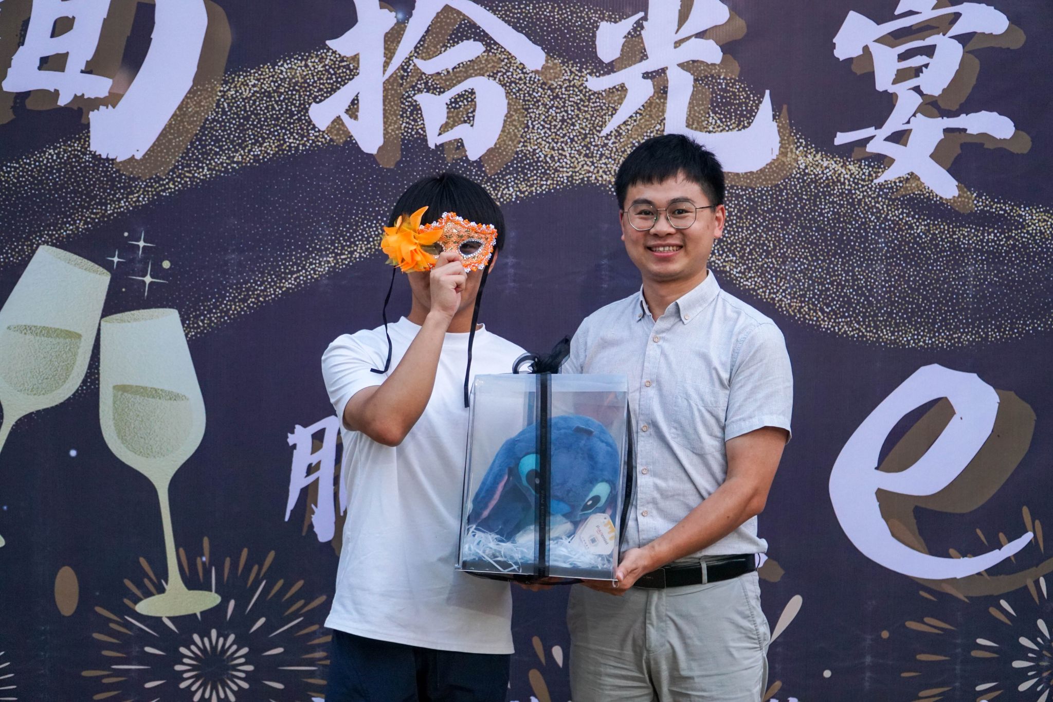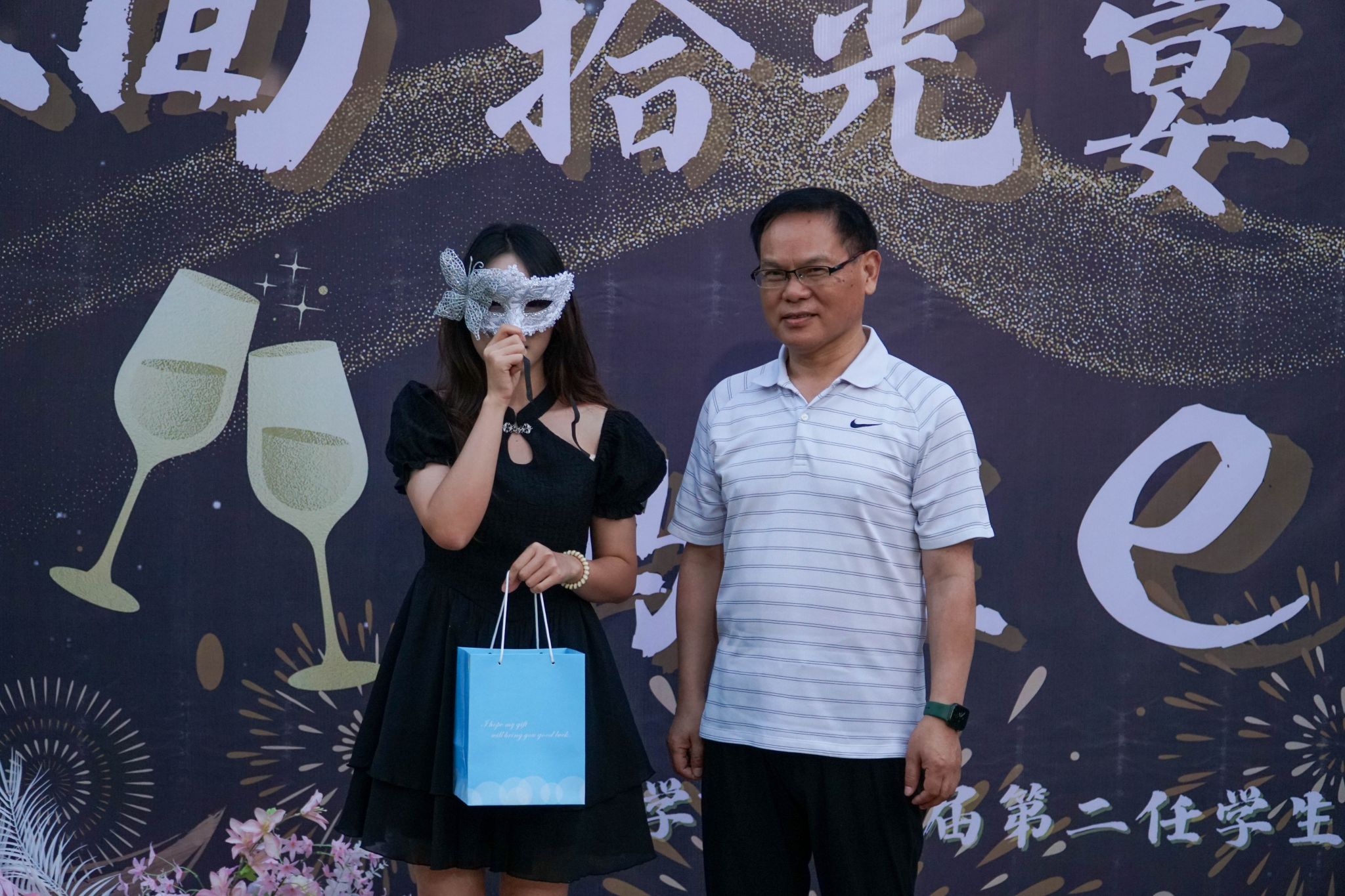 当酒会气氛渐入佳境,周俊、林泽金、向碧群三位副院长依次登台,由幸运代表携带抽奖箱,周俊副院长轻轻晃动箱中彩球,从中取出第一个幸运号码,现场观众屏息凝神,随着号码公布:144,热烈的欢呼声瞬间响彻会场。林泽金副院长紧接着抽取第二个幸运号码,被点到的同学激动之情溢于言表。最后,向碧群副院长揭晓最后一位幸运者。三位院长的抽奖环节,为“假面拾光宴”增添了神秘与惊喜,让这份属于计算学院的仲夏夜记忆,在欢笑与期待中愈发璀璨,也将全场气氛推向欢乐的顶点。