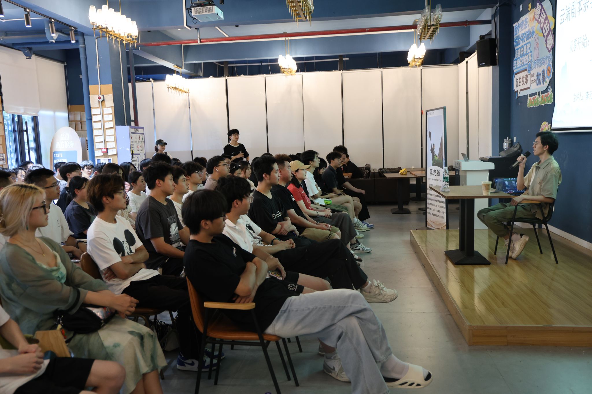 在东篱·故事茶馆,李元锋老师带来主题为《从零开始:剧本杀创作之道——以<时间演奏者的终章>为例》的创作分享会,从灵感萌发到剧本打磨,全方位解析剧本杀创作的核心要素,赢得学生热烈反响。