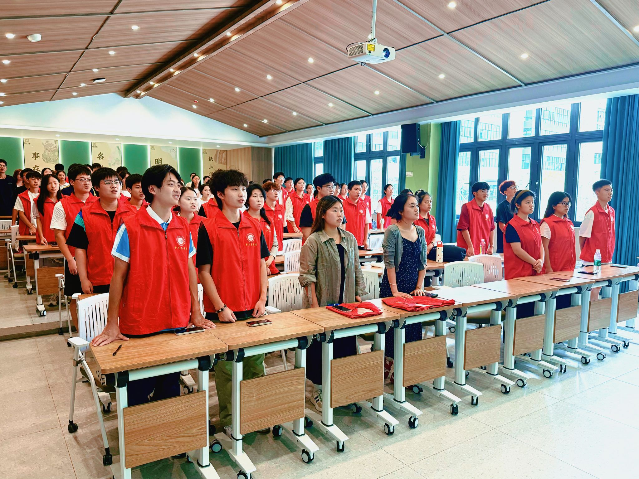 仪式伊始,在主持人郭家好的引领下,全场齐声高唱《中国青年志愿者之歌》。铿锵的歌声如雷鸣般震动每位志愿者的心灵,既唤醒了大家的奉献初心,更以澎湃力量照亮了未来的公益前行之路。随后,指导老师田雨致辞,重点阐述了志愿服务的核心对象与深远意义,殷切呼吁我们带动身边更多人投身其中;同时,也向新加入的志愿者们敞开温暖怀抱,寄予了深切厚望与美好期待。