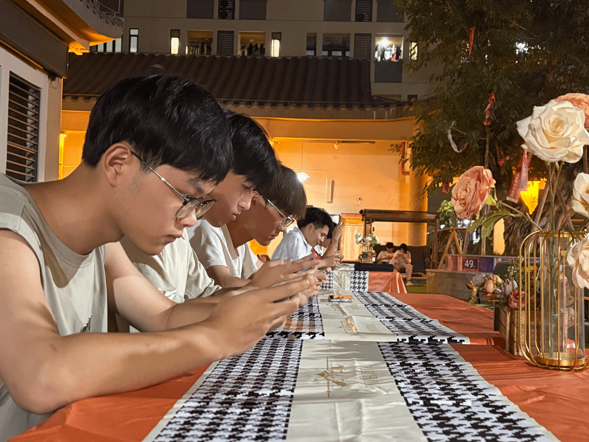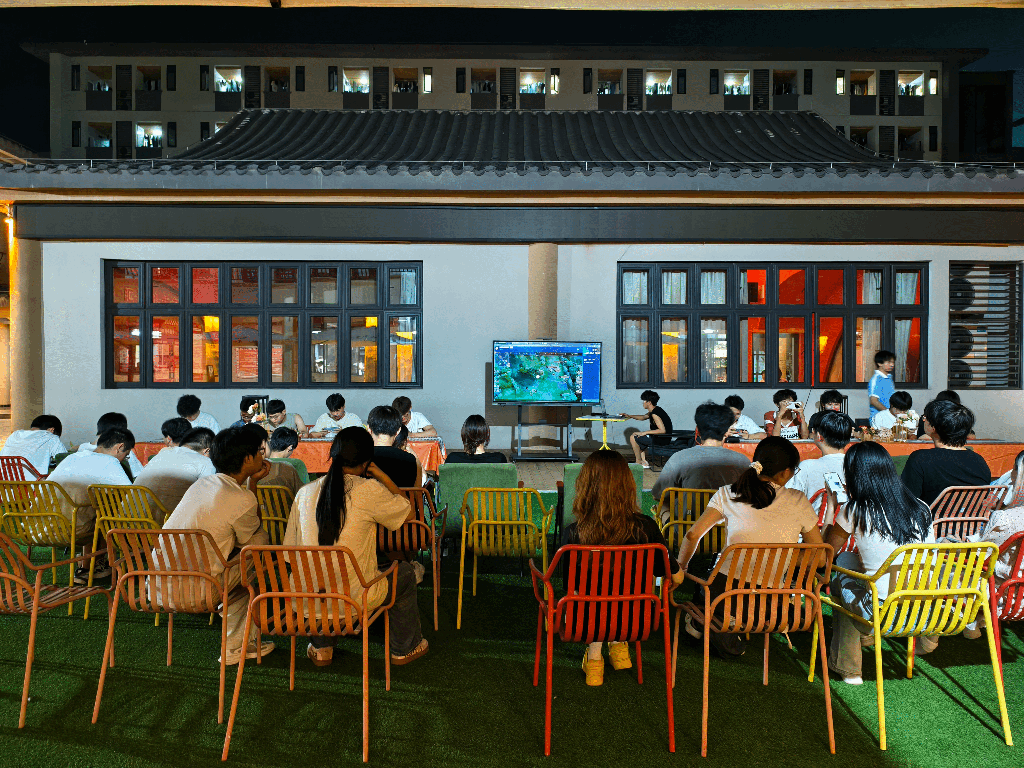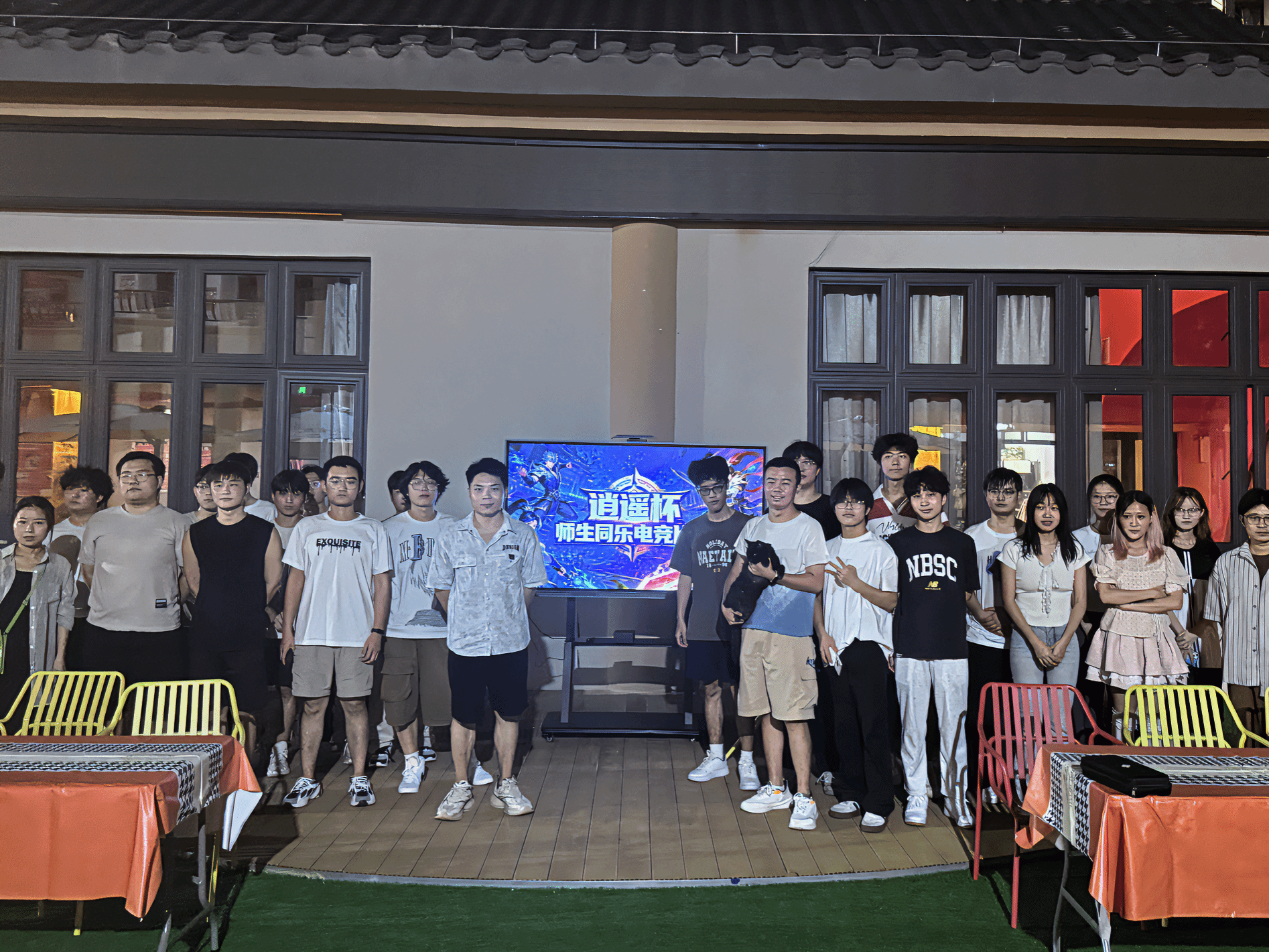 9月17日19点40分,古剑书院中庭一改往日静谧,重庆移通学院计算机学院主办,电竞社团协办的“逍遥杯”王者荣耀师生同乐竞技赛热烈启幕。8支参赛队伍早早到场,队员们或低头调试设备,或围圈商讨战术;指导老师们穿梭其间,轻拍学生肩膀,笑语缓解赛前紧张。主持人登上舞台,以洪亮的声音宣告“让我们一起享受这场师生同乐的竞技”,现场顿时欢呼四起,比赛正式拉开帷幕。