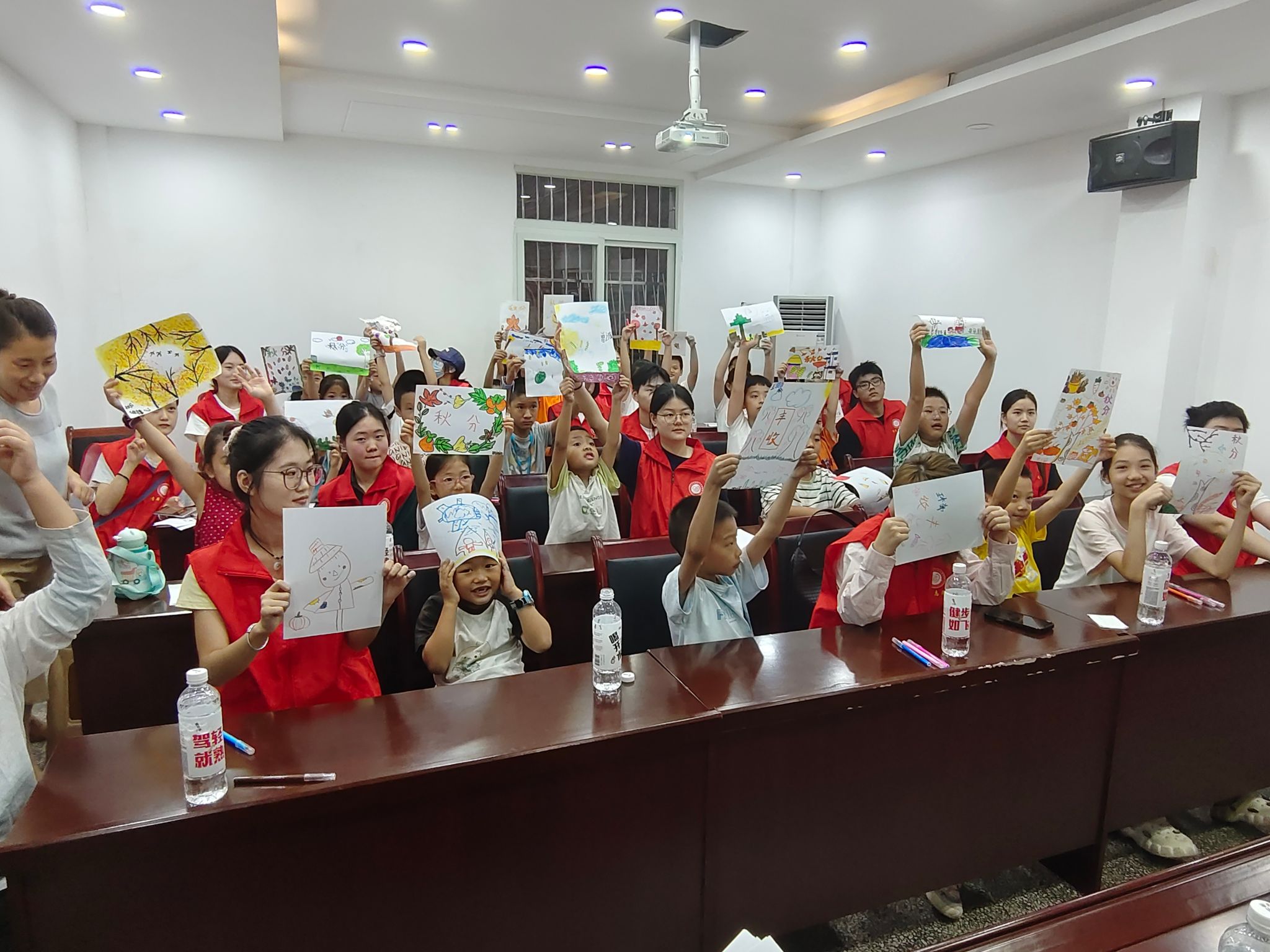 活动中,主持人通过幻灯片为社区青少年讲解秋分习俗。志愿者介绍了“竖蛋”“粘雀子嘴”等习俗的由来。在“绘秋图”环节,志愿者引导孩子们以“心中的秋分”为主题进行创作,用画笔描绘秋日之美。活动中还展示了稻穗、棉花等实物标本,通过讲述“粮食的旅程”,帮助小朋友们理解春种秋收的艰辛,树立珍惜粮食的意识。