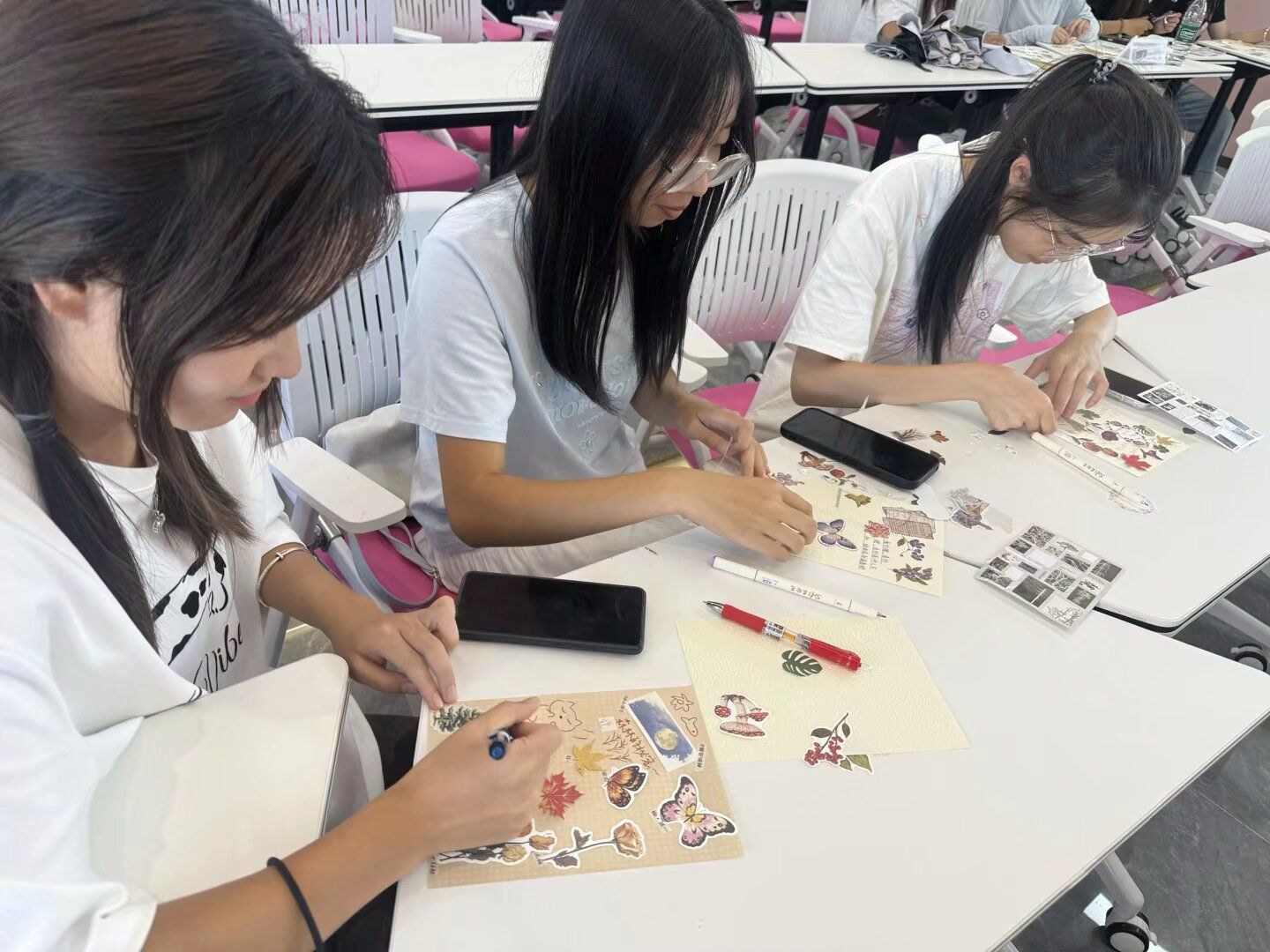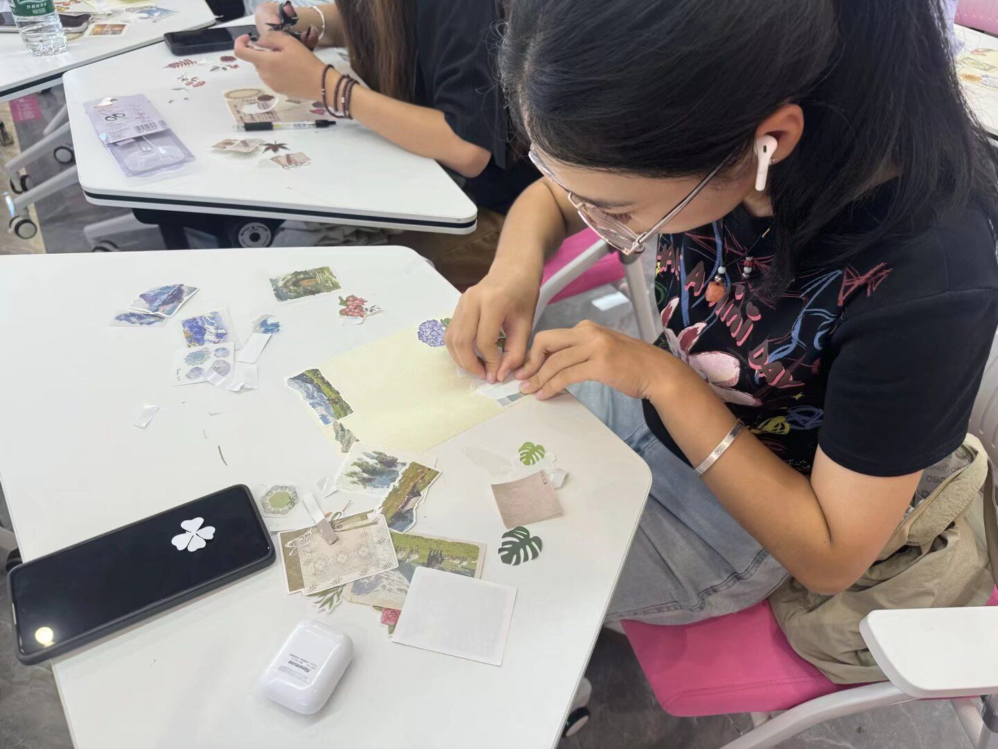 活动当日,丁山书院处女座智慧教室处处洋溢着青春活力与学习热忱。本次活动参与对象为计算机学院全体学生,共40人参与其中。创作环节是本次活动的核心亮点。同学们围绕“我的学习计划”“高效学习技巧”“学科重点梳理”等方向,在现场提供的手帐本、贴纸、彩笔等丰富创作素材中尽情发挥创意。大家或专注设计版面,或认真书写学习心得,将对学习的思考与规划凝于笔端、落于纸面。或者又用胶带粘贴最近生活的美好,既有枫树的落叶,也有天空的明亮。