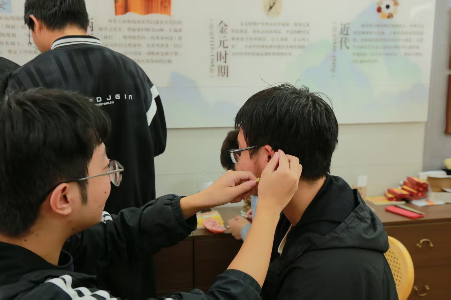 本次活动以寓教于乐,亲手体验的方式,让同学们不仅系统学习了耳穴疗法的悠久历史、基本原理及其蕴含的养生智慧,更在彭兰萱老师的指导下,亲身体验了耳穴贴压(使用王不留行籽)这一传统疗法。活动现场气氛活跃,同学们兴趣浓厚,在动手实践中零距离感受了中医针对放松身心、缓解疲劳的独特调节作用。